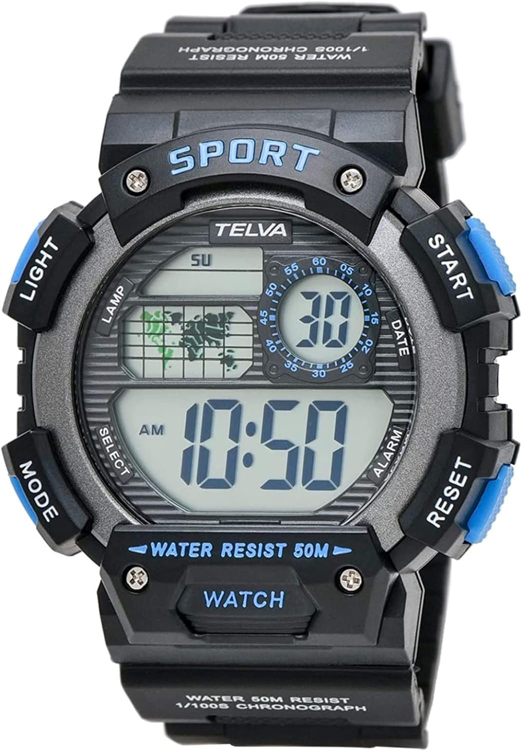Klefer TED282メンズデジタルリストウォッチ、防水、ストップウォッチ機能、ウレタンストラップ、ブラック、ブルー