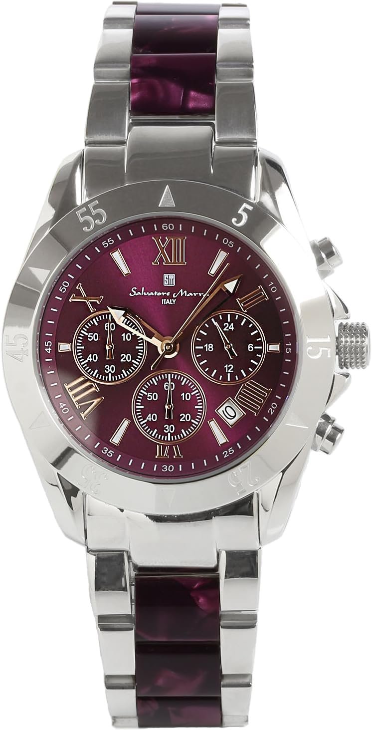 Salvatore Marra SM23105-SSPLPGメンズクロノグラフアセテートコンビネーションストラップ20th Anniversary Limited EditionブランドランキングWatch Gift Gift Silver Purple Rose、Silver Purple Rose、Modern