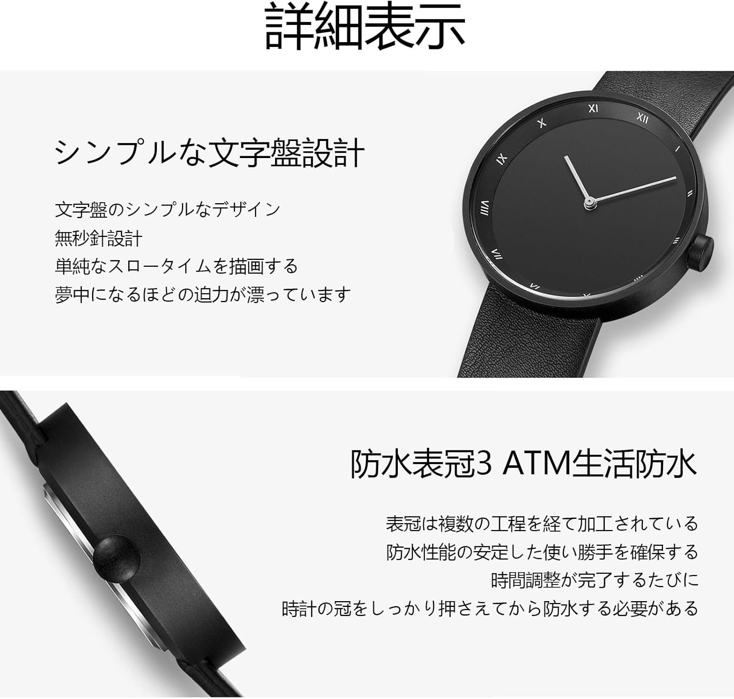 SZSLスタイリッシュなカジュアルクォーツウォッチ軽量シンプルなデザイン防水安定カウハイドレザーストラップ女性(黒)、黒、シンプル、カジュアル、クラシック