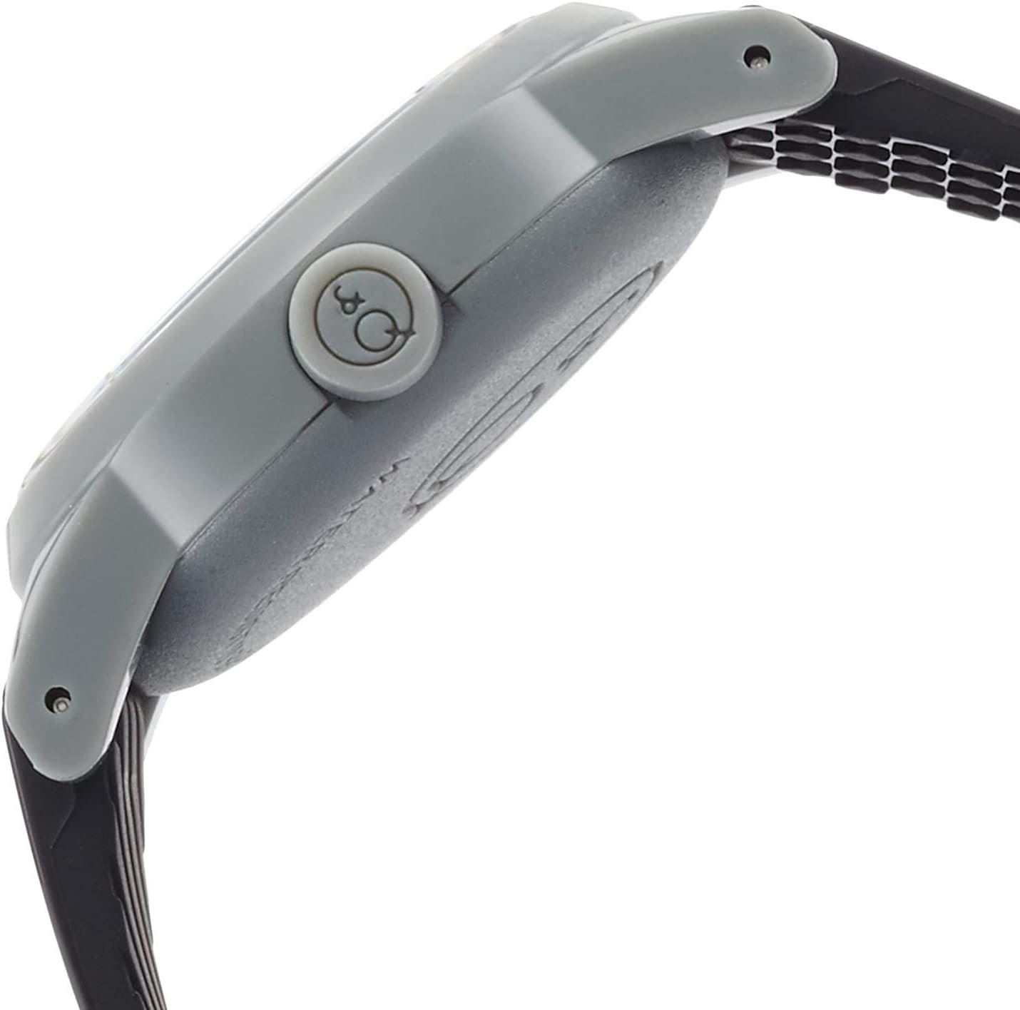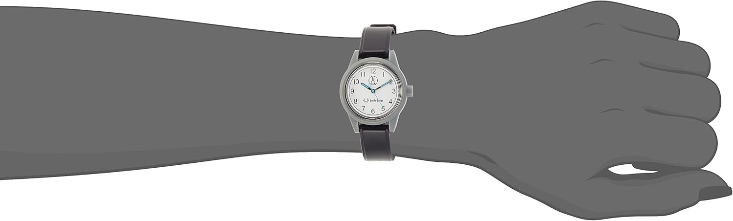 [Q&Q SmileSolar] 太陽光はもちろん、室内照明でも充電できるメンテナンスフリーの時計です。また、このモデルでは一部にリサイクル素材を使用し、環境に優しいカラフルなカラーを採用することで生産時の廃棄物を削減しています。