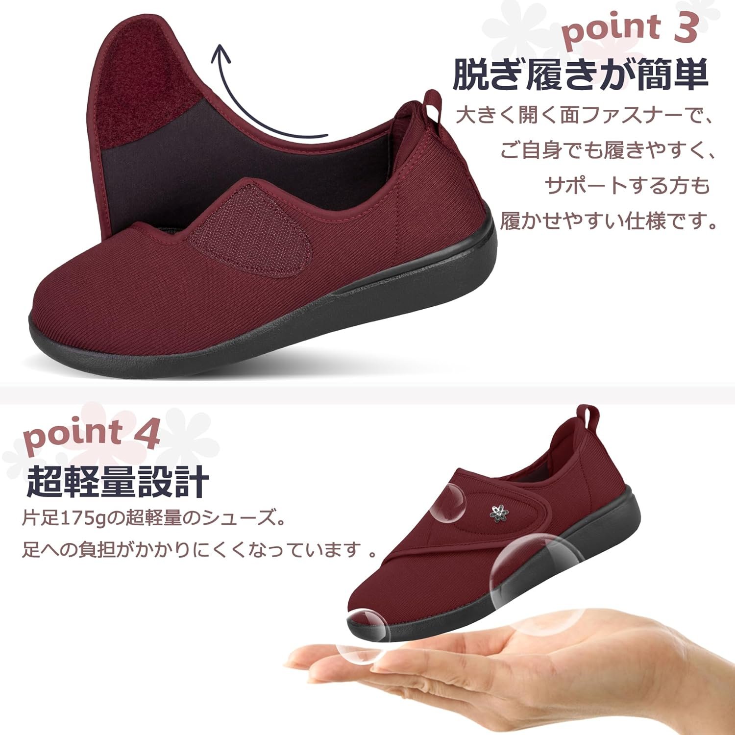 [JIAFO] 看護シューズ、リハビリテーションシューズ、女性、スリップアンチスリップ、高齢者、スリップオン、4Eスニーカー、ウルトラ軽量、女性、病院の靴、屋内靴、摩耗しやすい、ワイド、転倒予防
