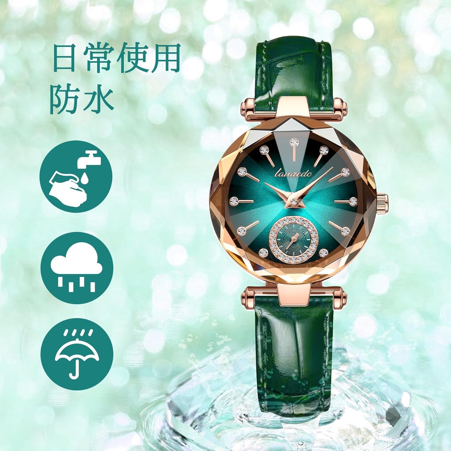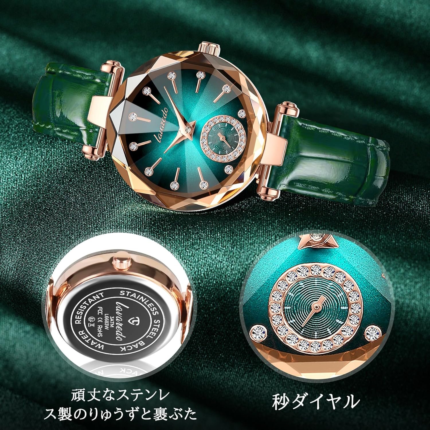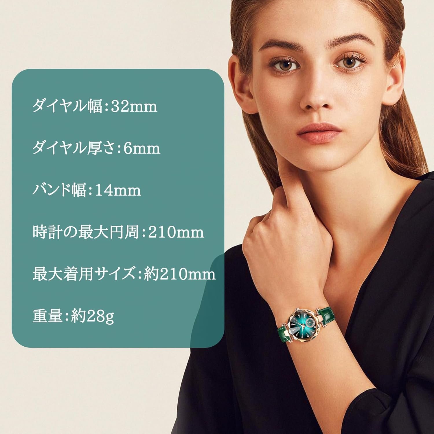 Be the first to review “女性の腕時計、スリム、腕時計、スタイリッシュ、防水、緑、エレガント”