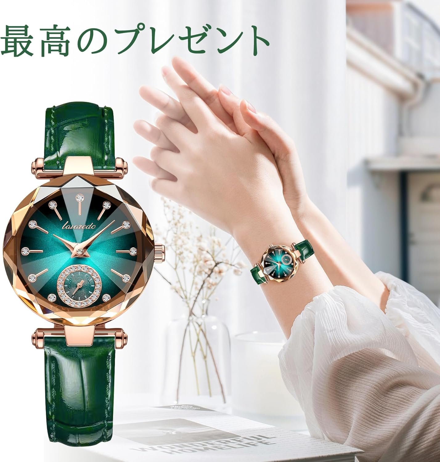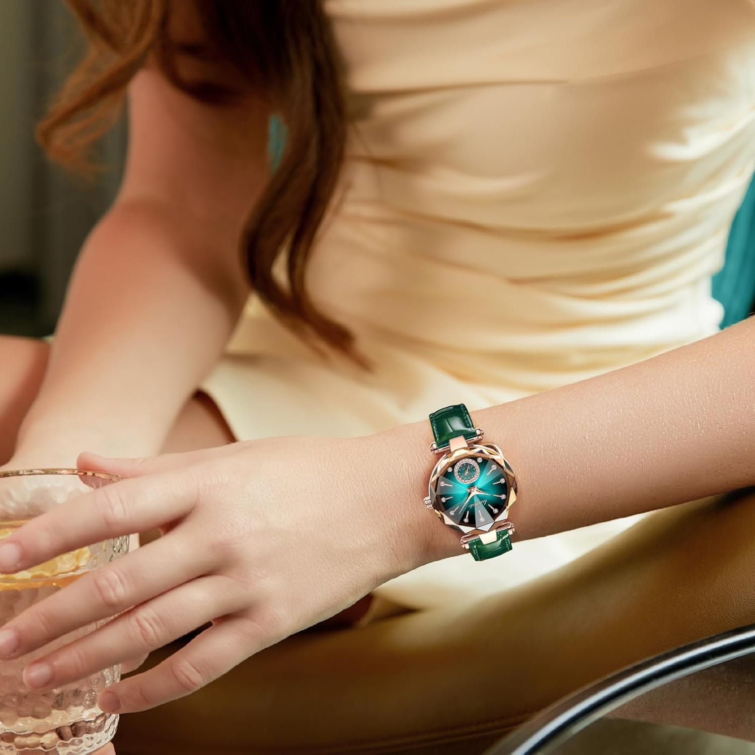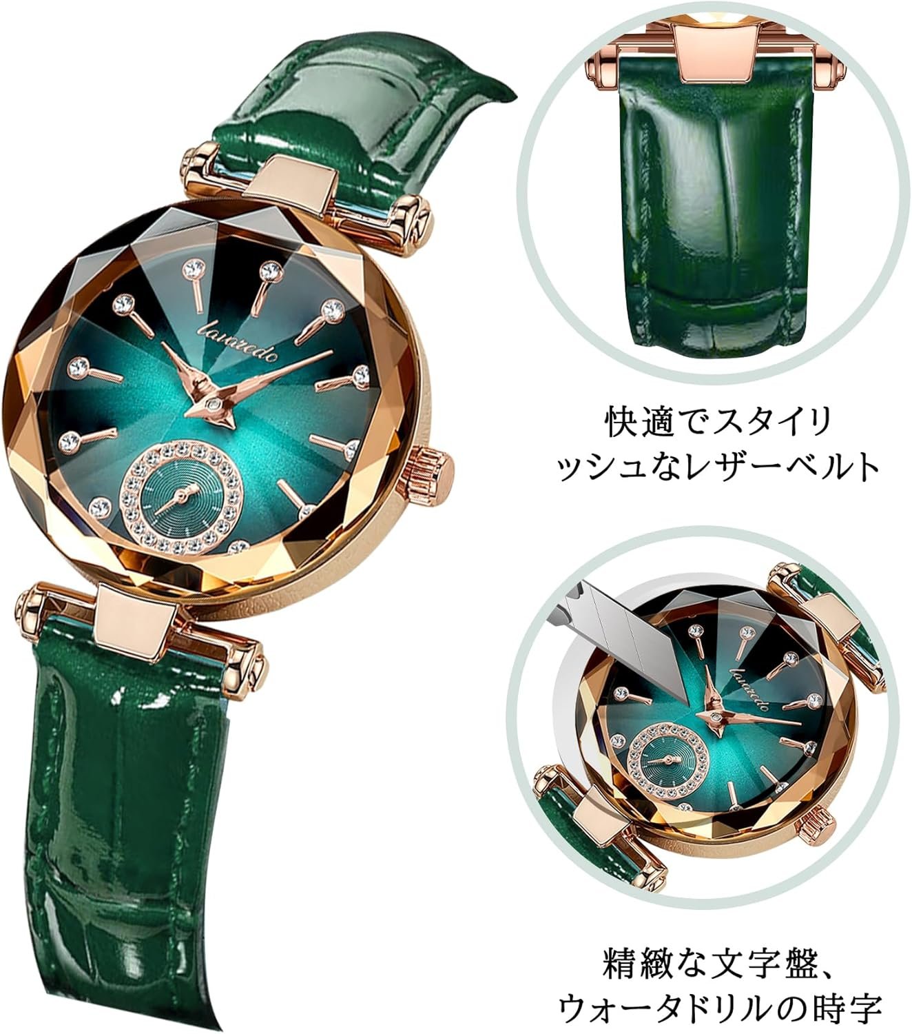 女性の腕時計、スリム、腕時計、スタイリッシュ、防水、緑、エレガント