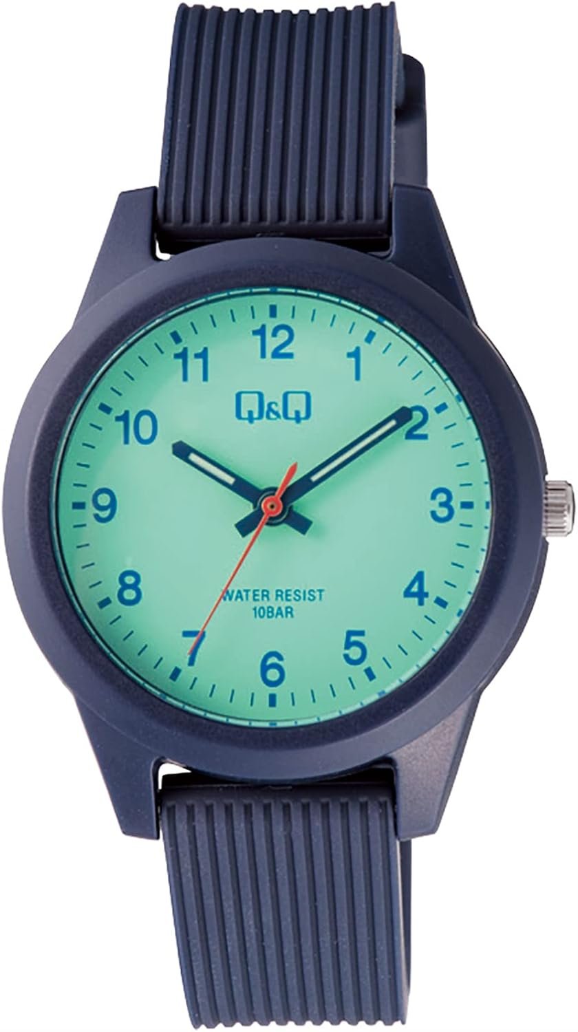 市民Q&Qアナログカラーウォッチ、防水、ウレタンストラップ、青/緑