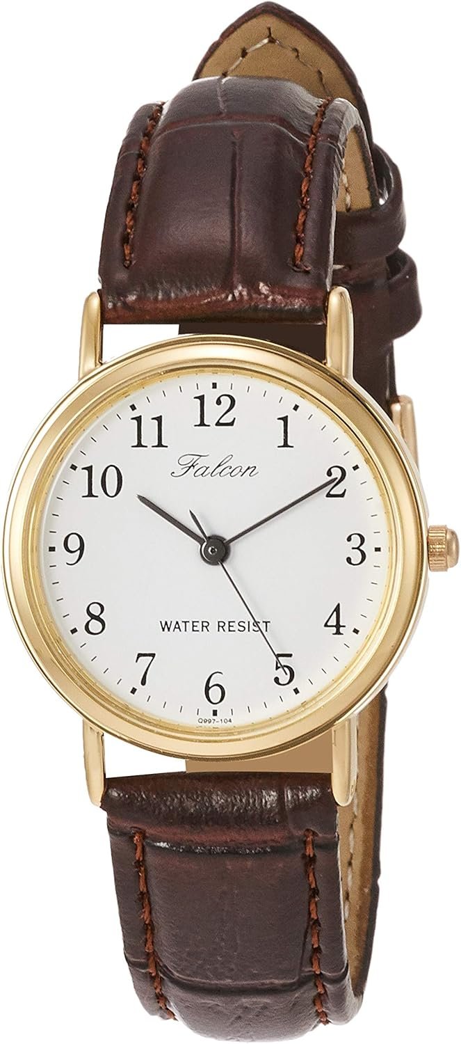 市民Q&Q Q997-104女性用ウォッチ、アナログ防水、革のストラップ、白、白/茶色