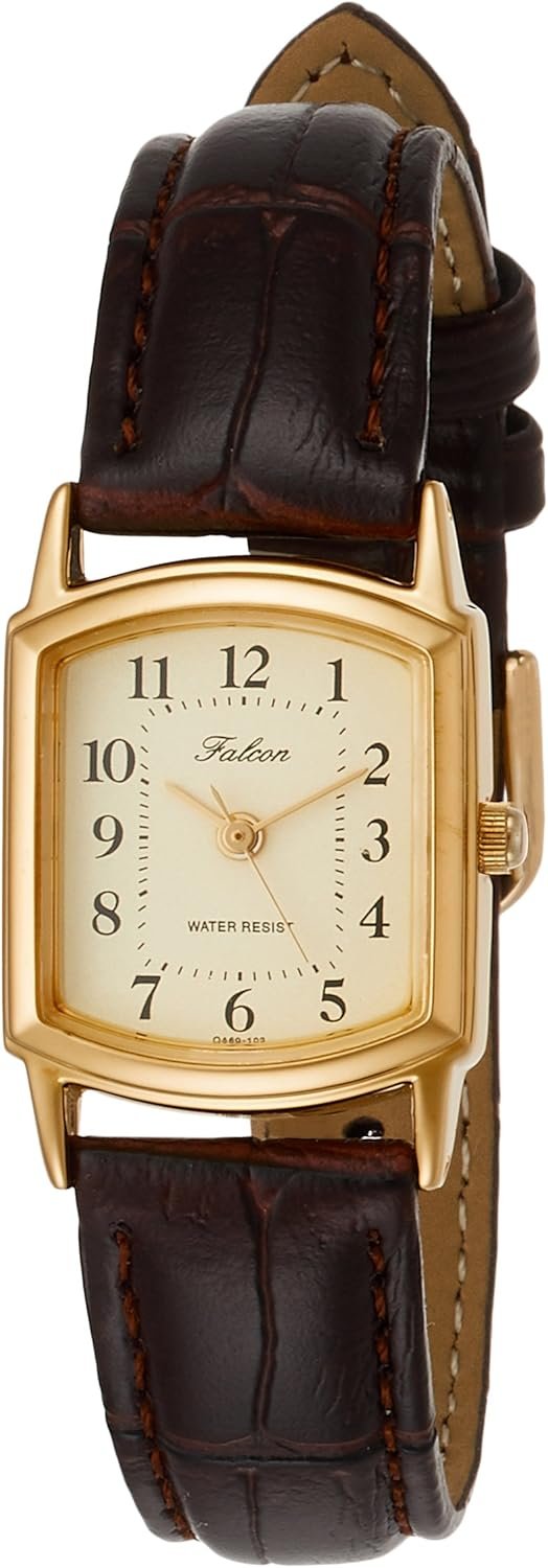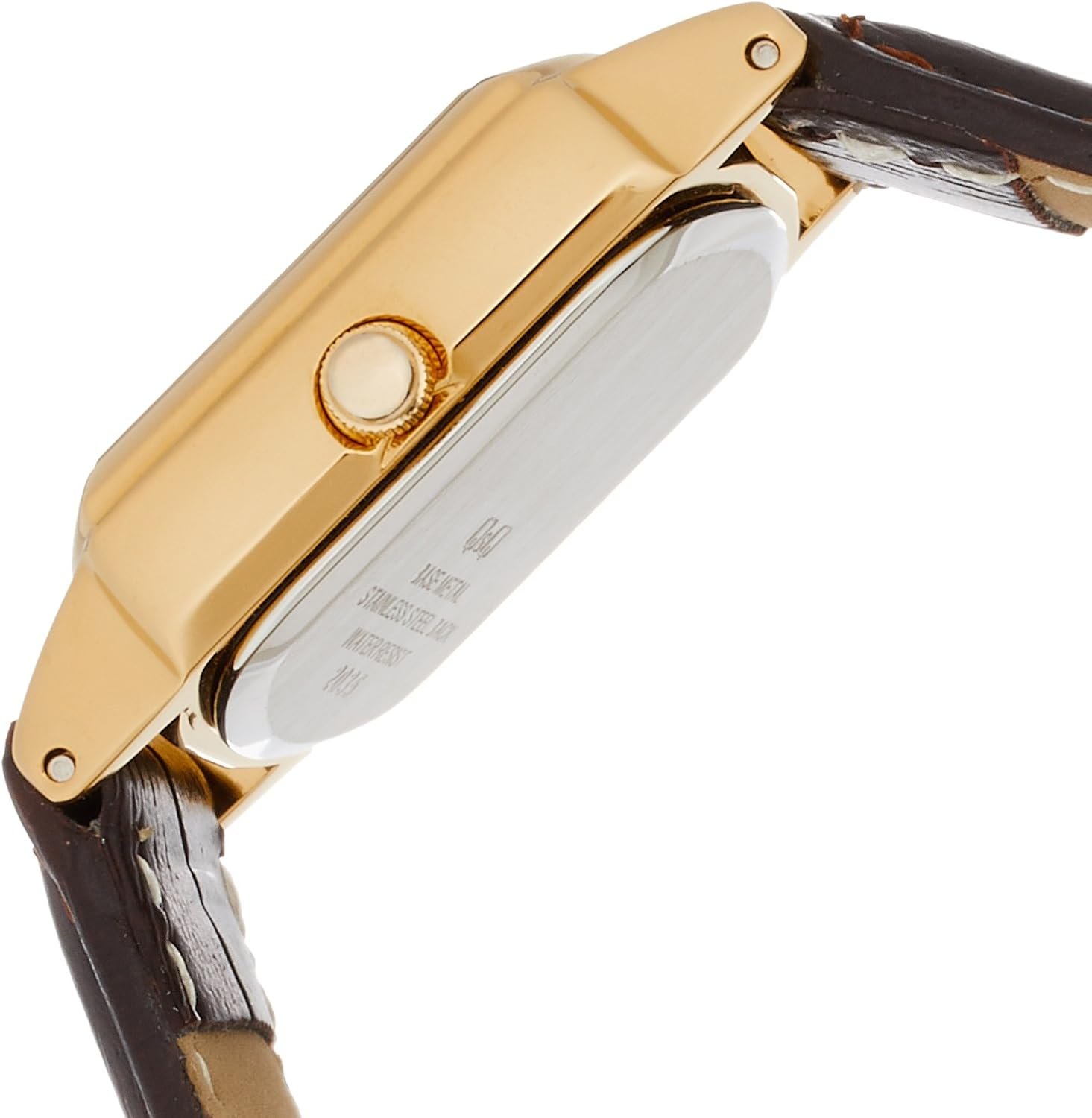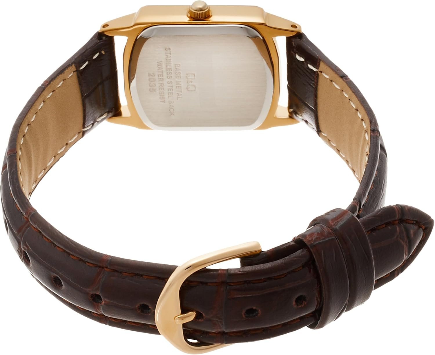 市民Q&Q QA69-103女性用ウォッチ、アナログ防水、革のストラップ、ゴールド、ブラウン