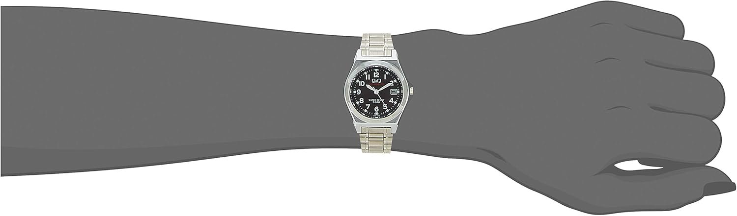 Citizen Q&Q H061 Women’s Watch、アナログソーラー、防水、日付ディスプレイ、メタルバンド、シルバー/ブラック、時計