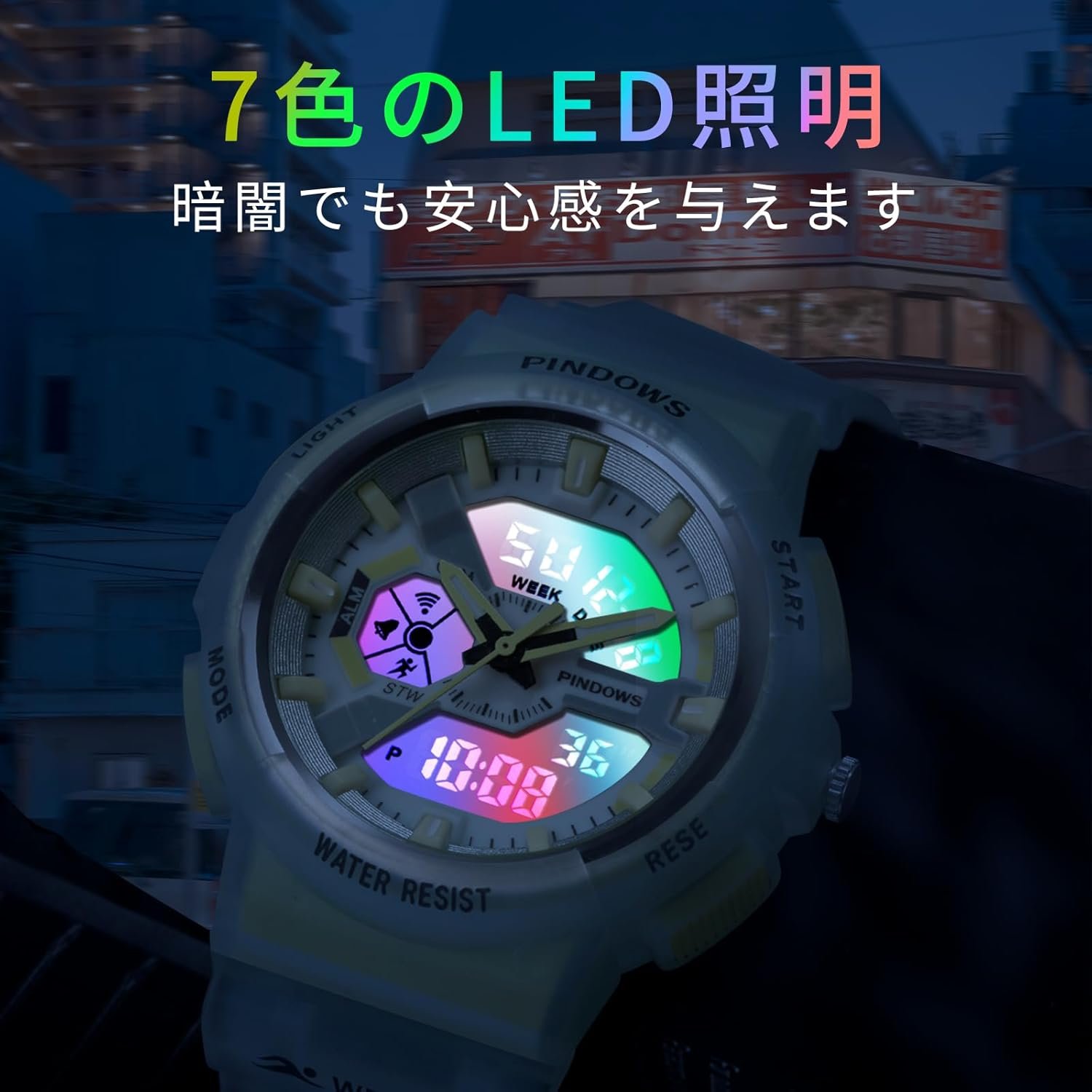Be the first to review “Pindows Women’s Analog Digital LED Backlight 50m防水マルチファンクションスポーツウォッチアウトドアアクティビティ、637N12:ホワイト、クラシック”