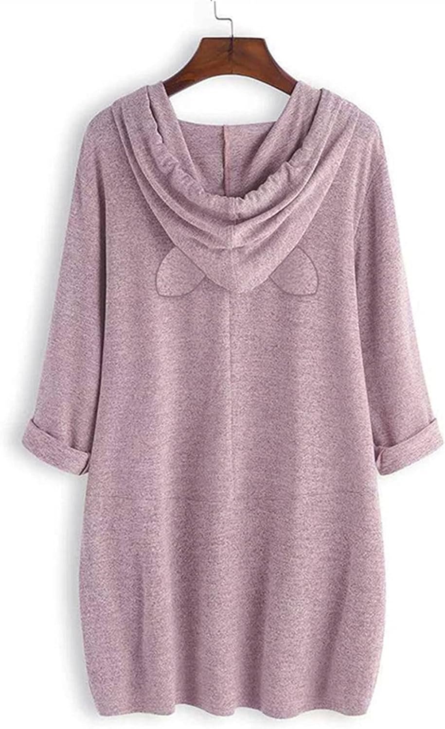 2021秋の新第3四半期ノースリーブブルースプルオーバーフード付きセーターゆったりとした大きい婦人服プリントかわいいブラウス女性 (Color : Pink, Size : XXX-Large)