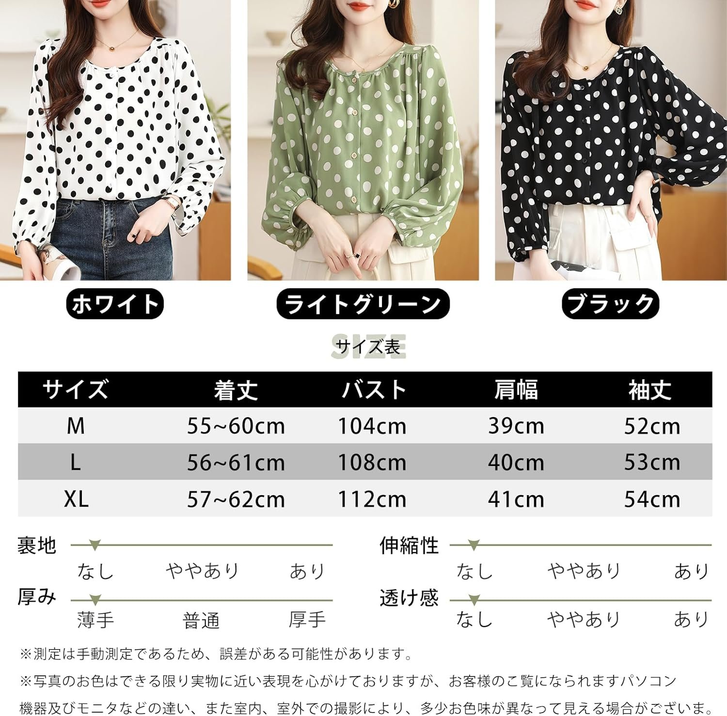 7-livehouse レディース ブラウス トップス チュニック シャツ 長袖 春秋 かわいい おしゃれ 薄手 水玉柄 体型カバー 着痩せ 前開き ボリュームスリーブ 水玉 ワンピース きれいめ