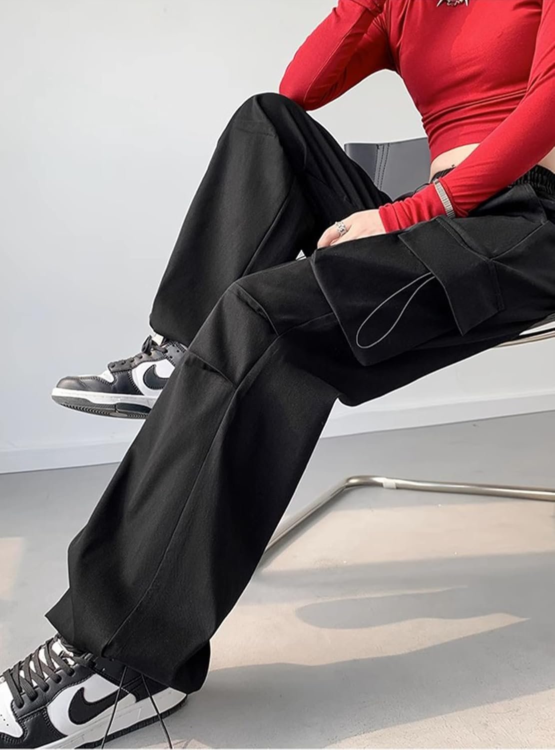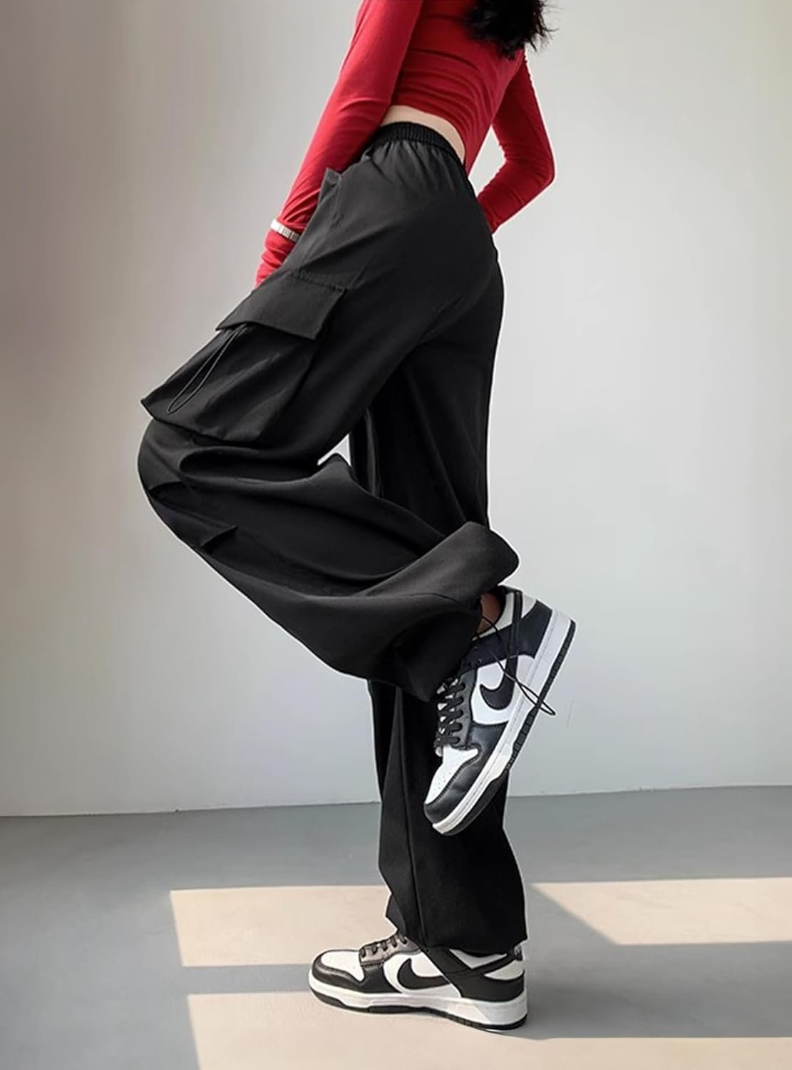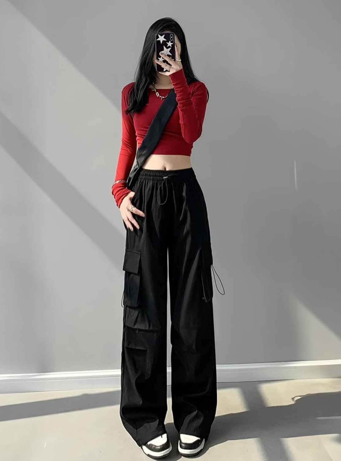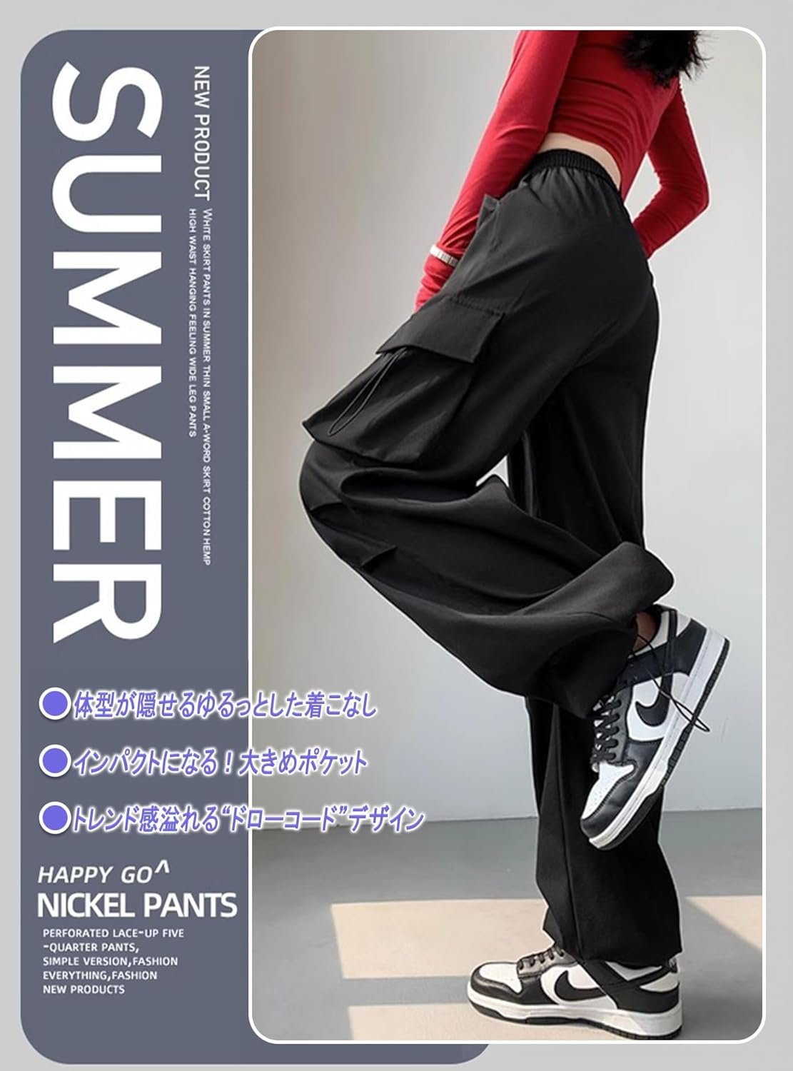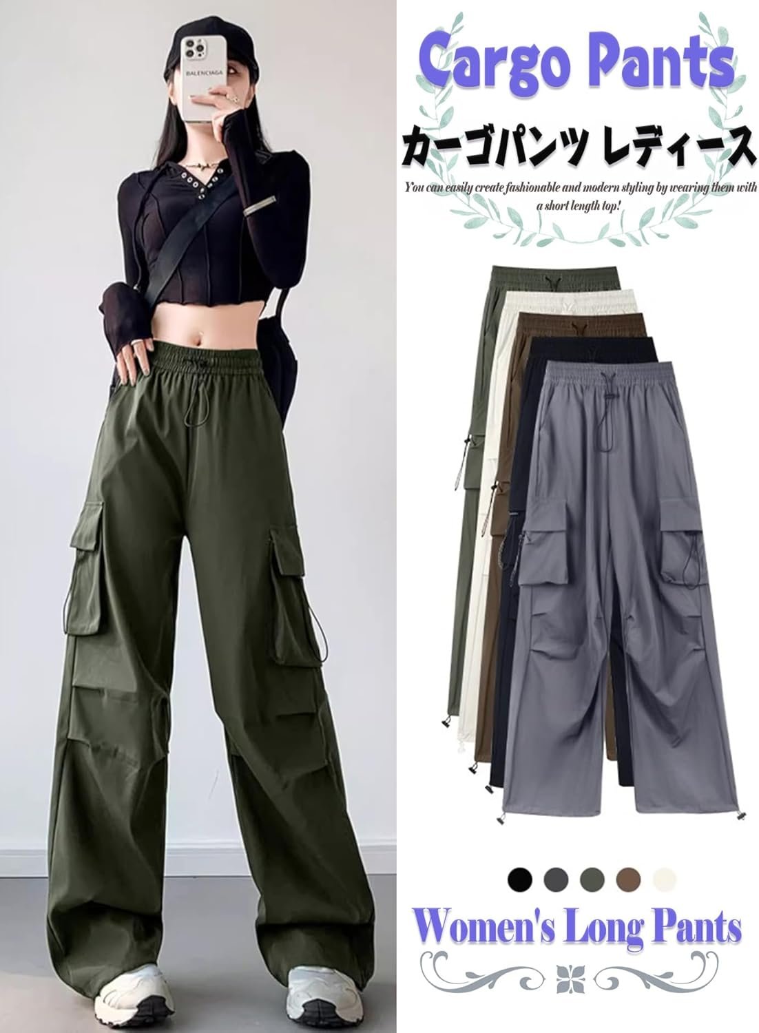 Fourfivesix Haru Women’s Cargo Pants、幅、長いズボン、ゆるいフィット感、ポケット、薄い、ヒップホップ、ダンス、クール、ストリートスタイル、ボトム、カジュアル、春、夏、夏、秋、プレーン