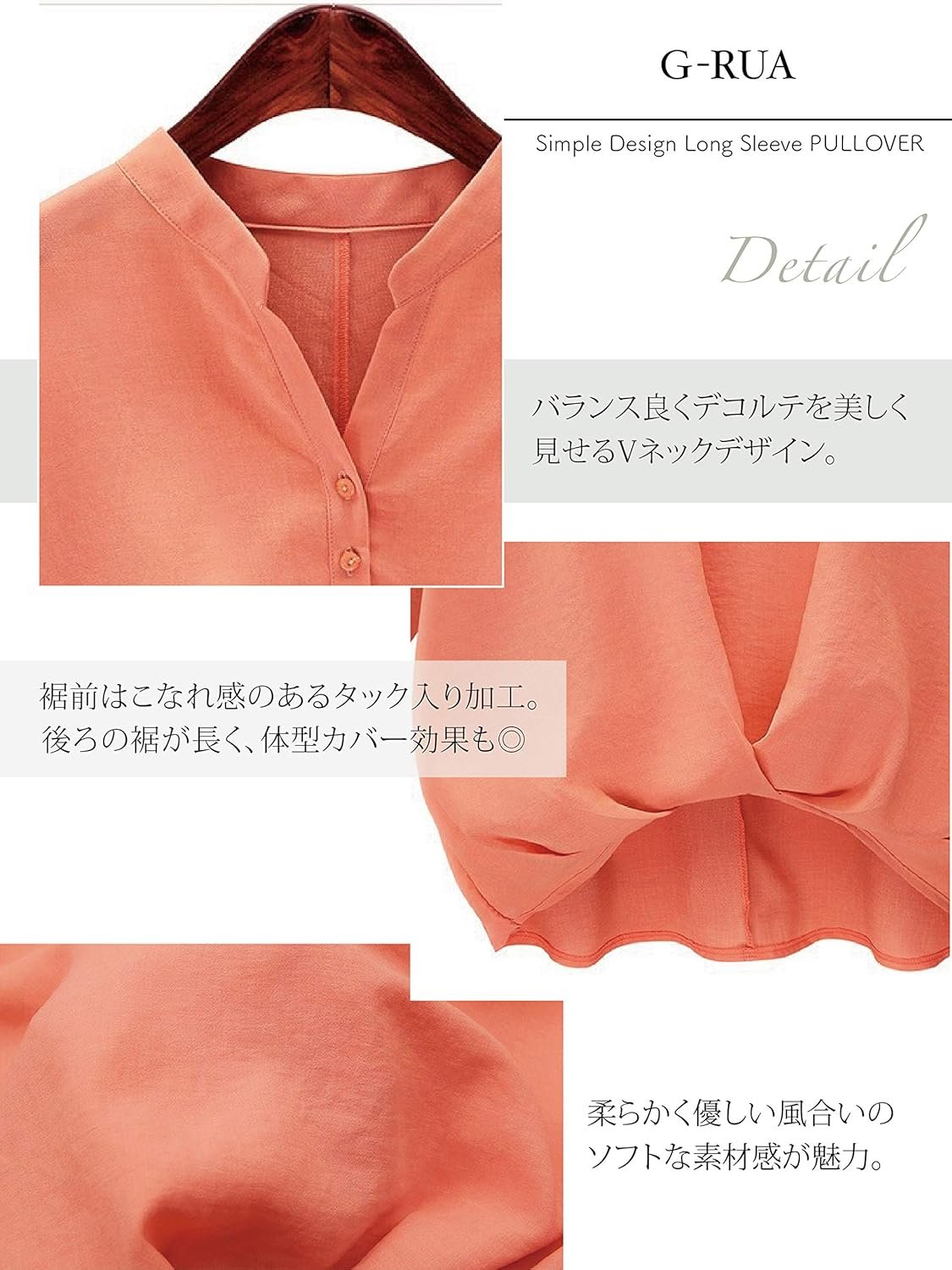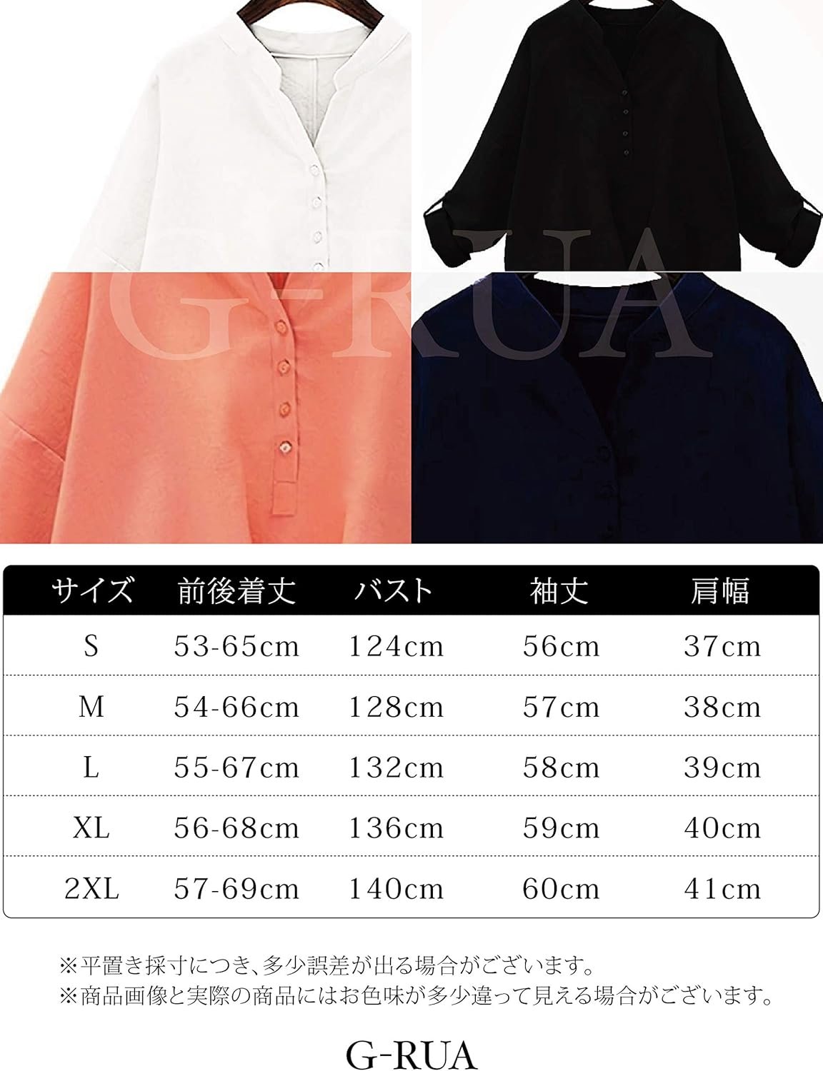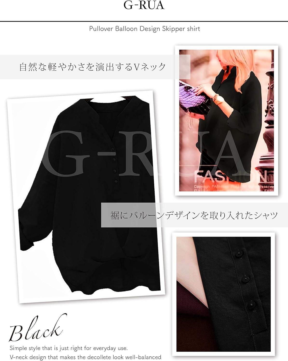 Girua#093女性スキッパードレープシャツ、ブラウス、長袖&3/4スリーブ、2種類、ボタンスリーブ調整、4色x 5サイズ(S -2xl)