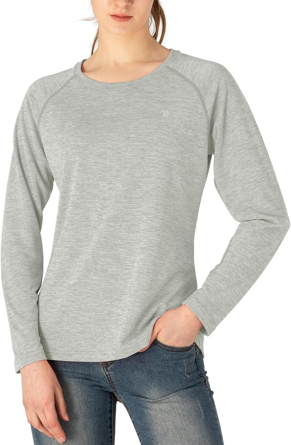 Gopuneの長袖シャツ、テニスウェア、クルーネック、クイック乾燥、長いTシャツ、カットと縫製、ストレッチ、薄い摩耗、フィットネスウェア、スポーツ、通気性、UV保護、春、秋、夏