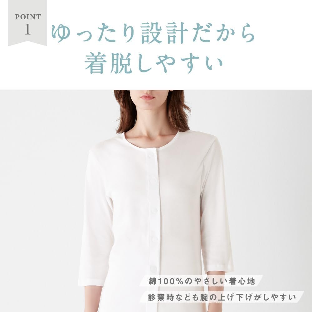 Gunze HW4038女性の3/4スリーブインナー、オープンフロント、抗菌性、脱臭、保湿成分、100%綿、愛する