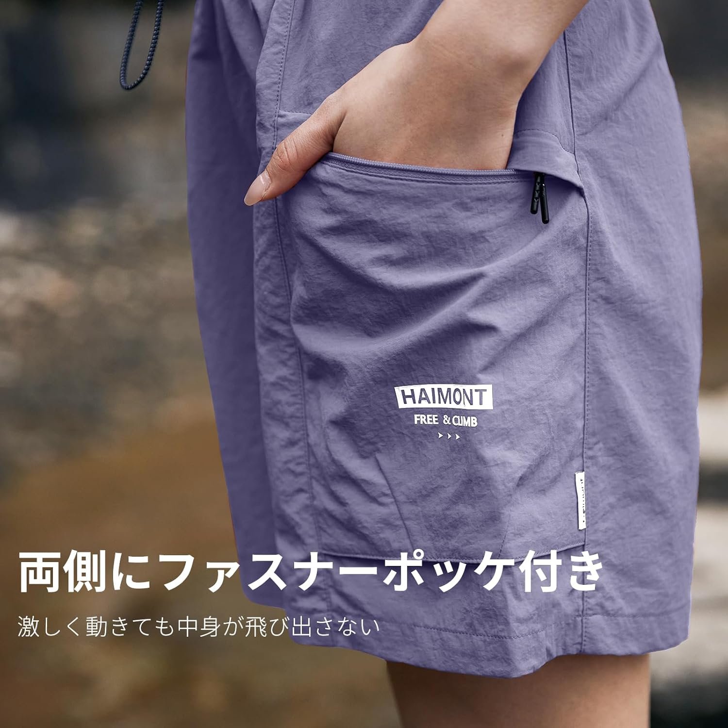 Haimont Women’s Half Pants、汎用性、ショートパンツ、スポーツ、ハイキング、登山、ゴルフ、洗える、涼しく、薄い、水忌避、汗吸収剤、速乾性、通気性、軽量、夏、ジッパーポケット