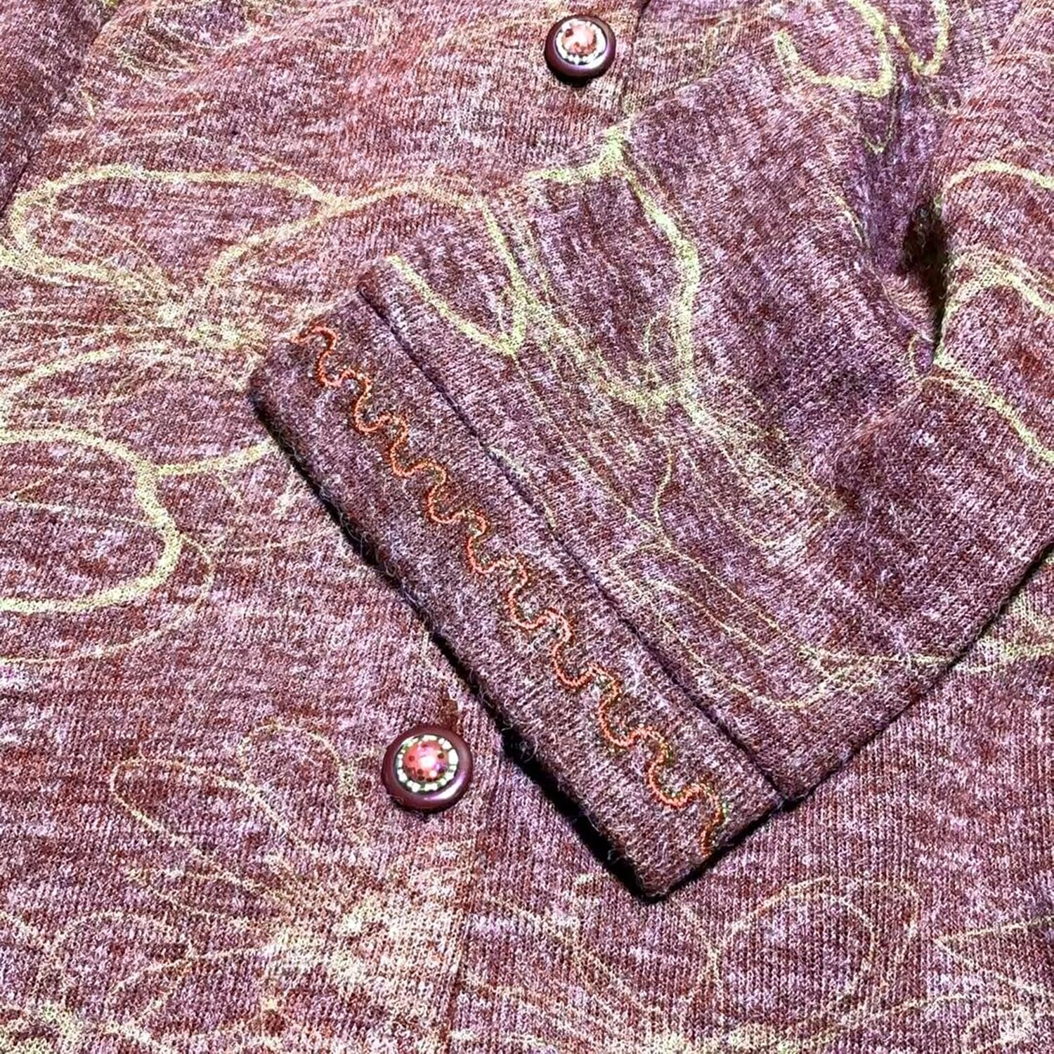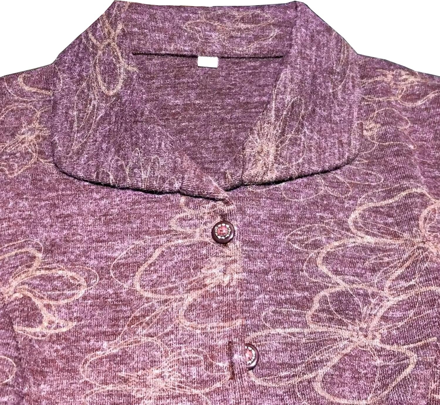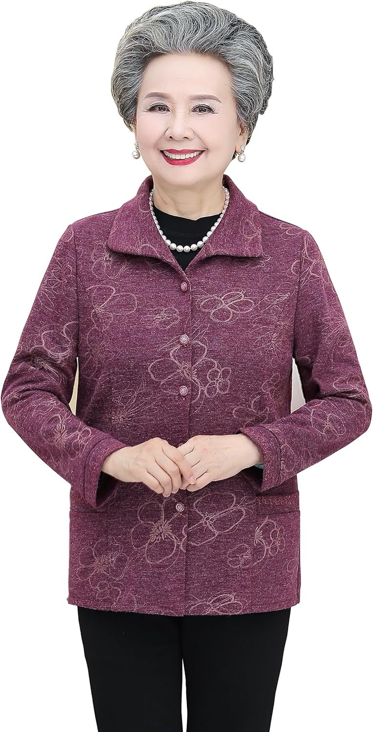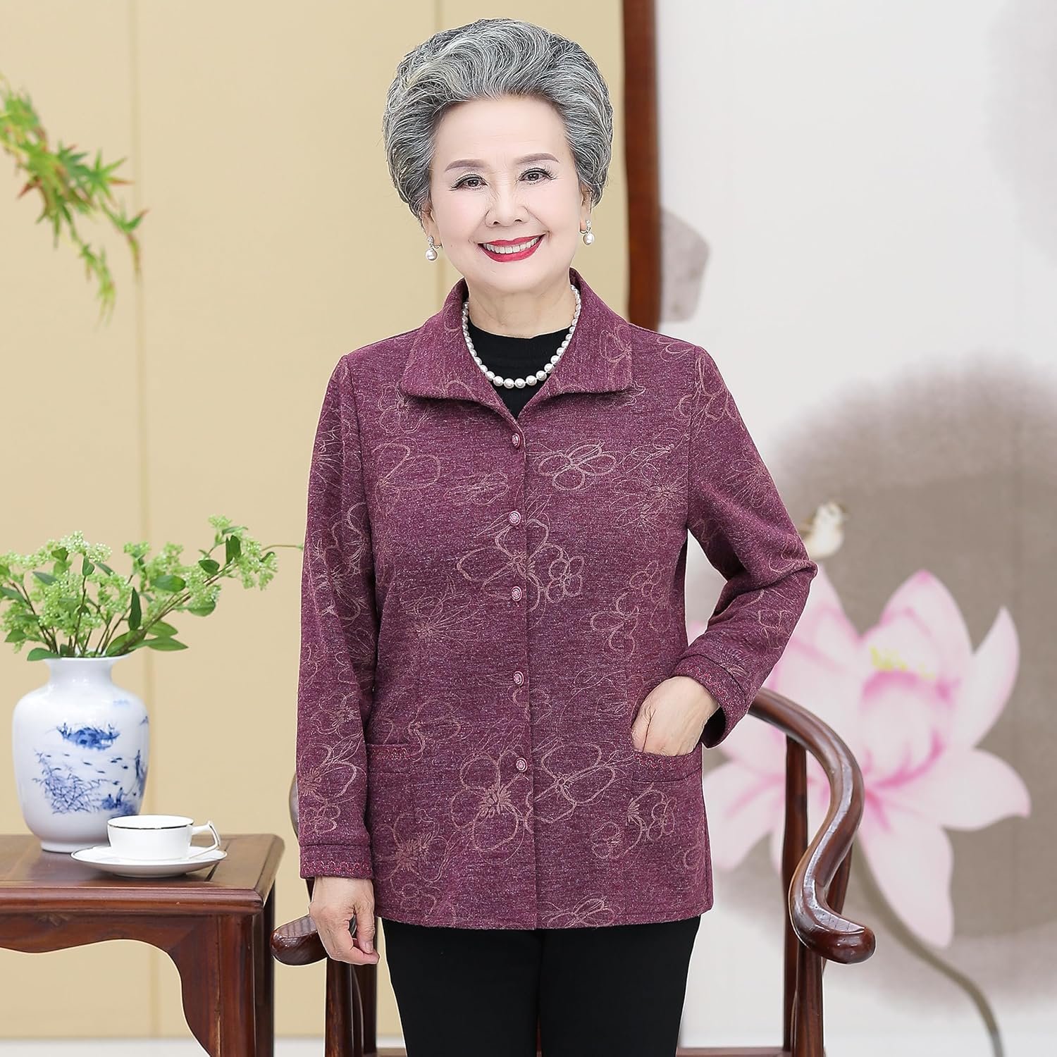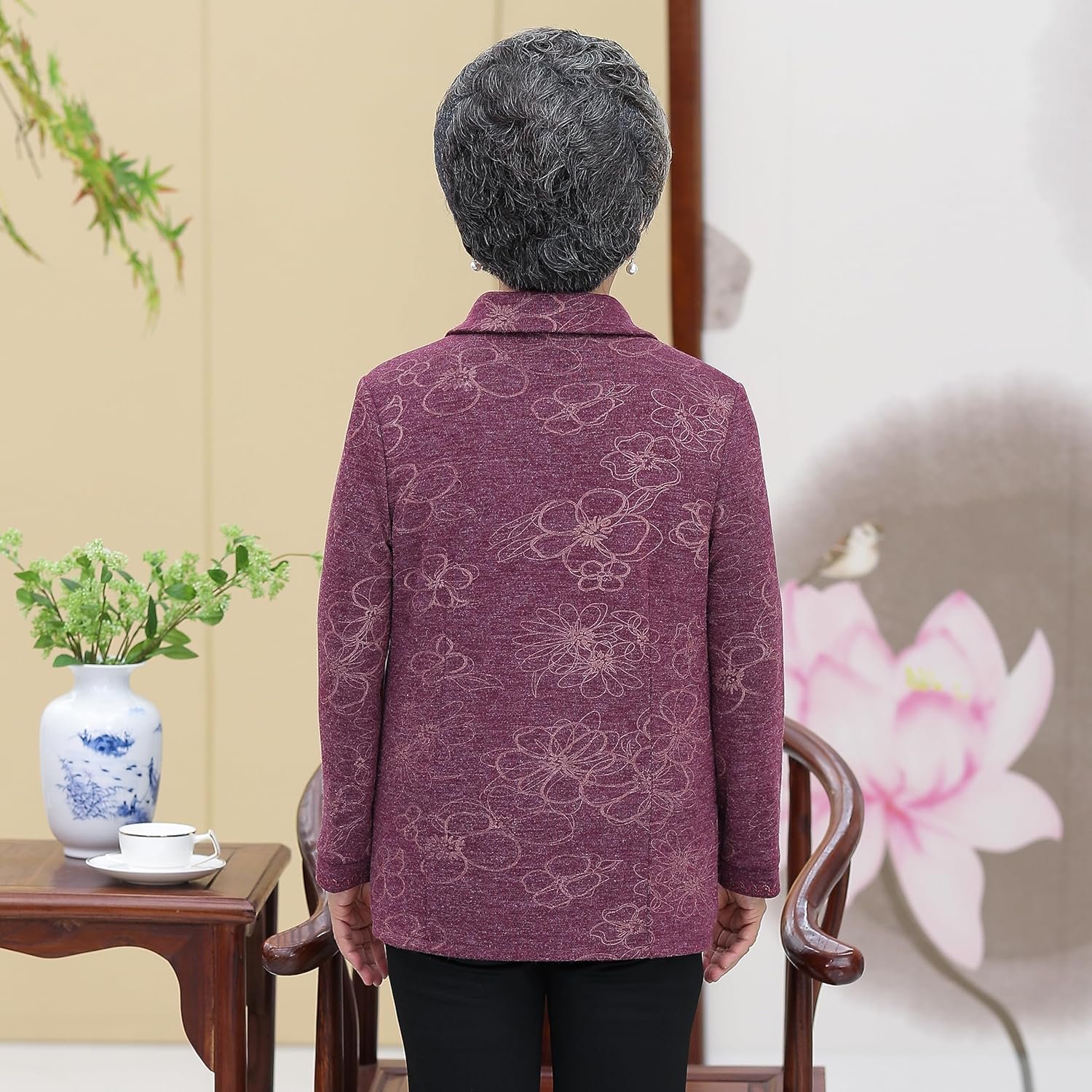 Kannuchin Gjza3高齢女性の花柄の花柄長い袖の弾性ニットオープンフロント太いシャツブラウス秋の冬の女性のファッション尊敬のトップス