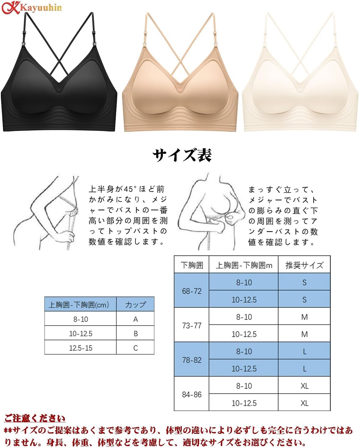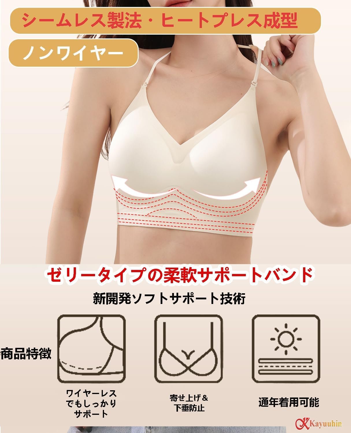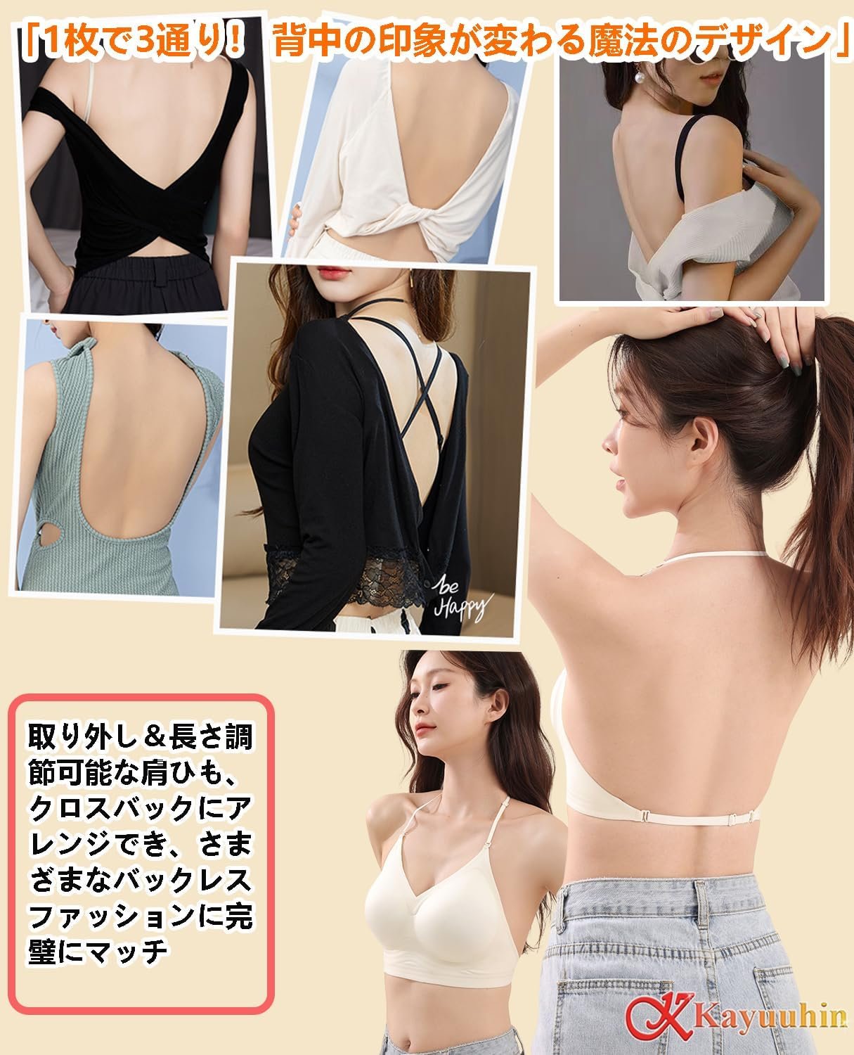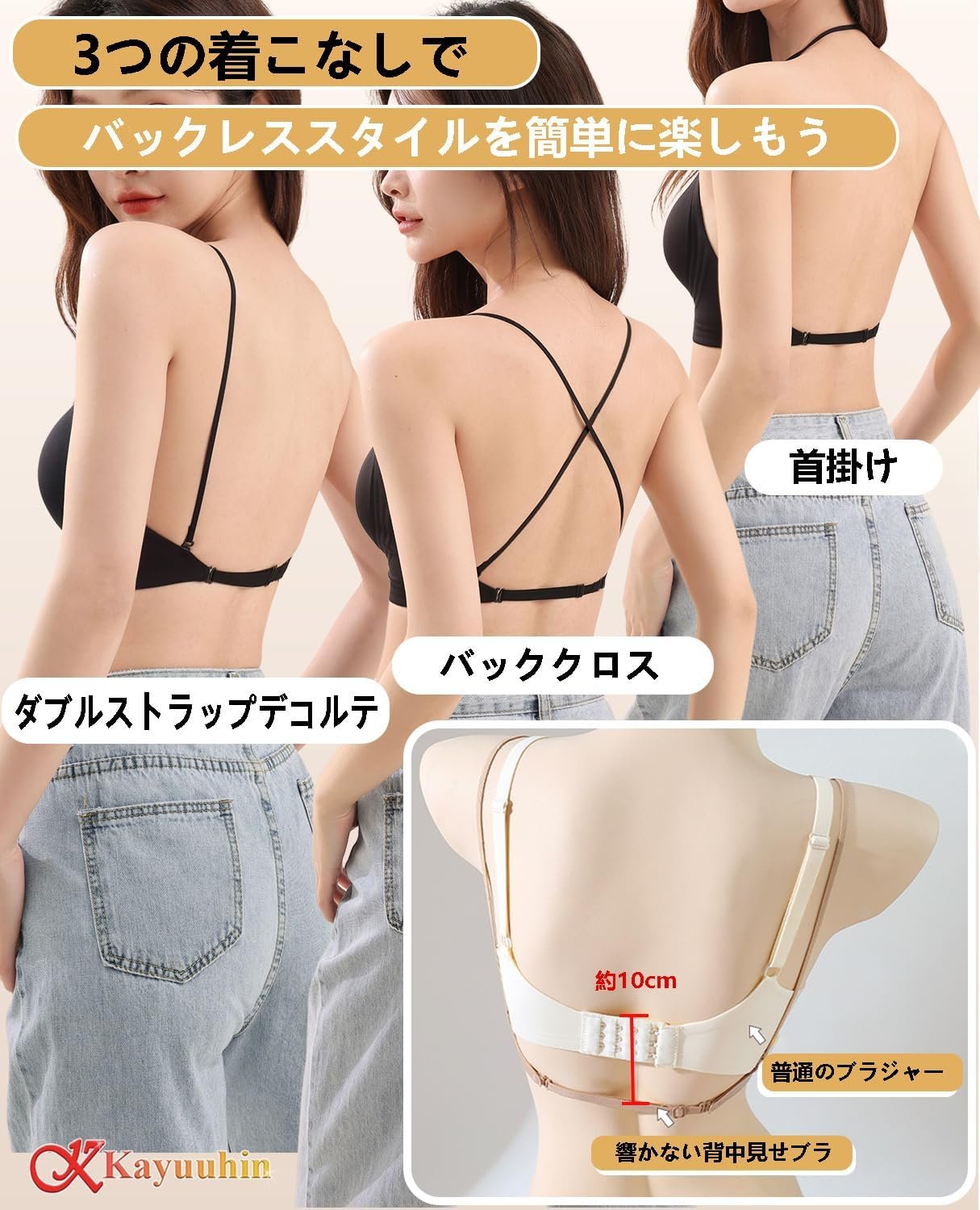Kayuuhin ブラジャー 背中見せ 3WAYストラップ 新開発ソフトサポート技術 シームレス ノンワイヤー 着方いろいろ U字バック レディース 背中見せ インナードレス 休暇用 調節可能 ダブル