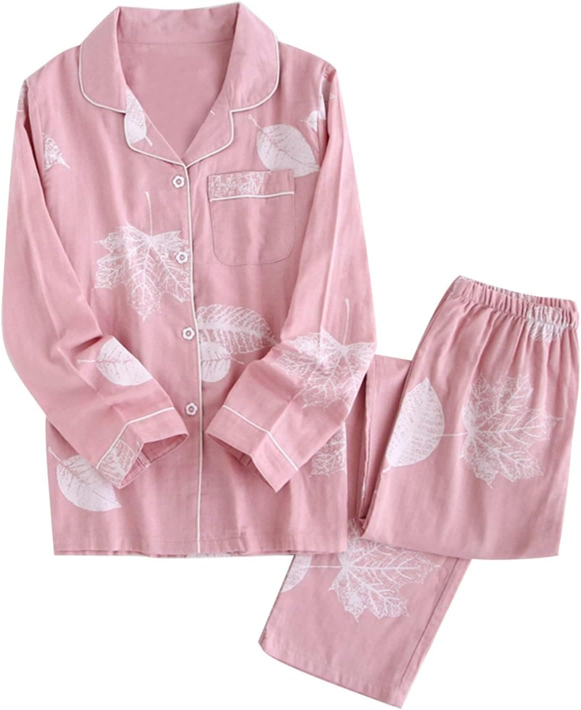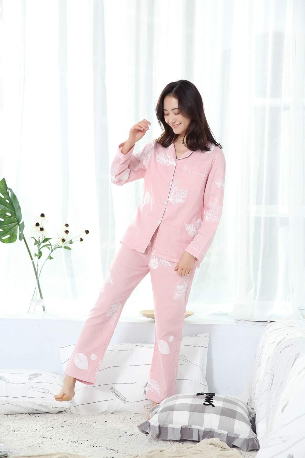Lamiu Women’s Pajamas、長袖、綿100%、ソリッドカラー、トップとボトムセット、ラウンジウェア、ゆるい、かわいい、ラウンジウェア、Vネック、オープンフロント、ナイトウェア、暖かい、汗吸収性、素早い乾燥、通気性、