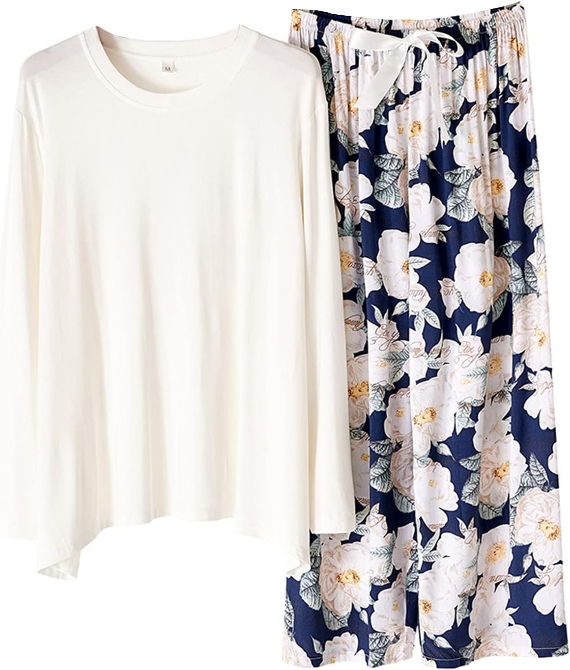 Lamiu Women’s PJS、Floral、Sleeves Short、Long、または3/4、Set、3/4、Thin、Reanon、Loungewear、Plain、Long Pants、Loose、Stylish、Soft、Moisure Wisking、Quick Drying、Beserinable、Exercish、All Season