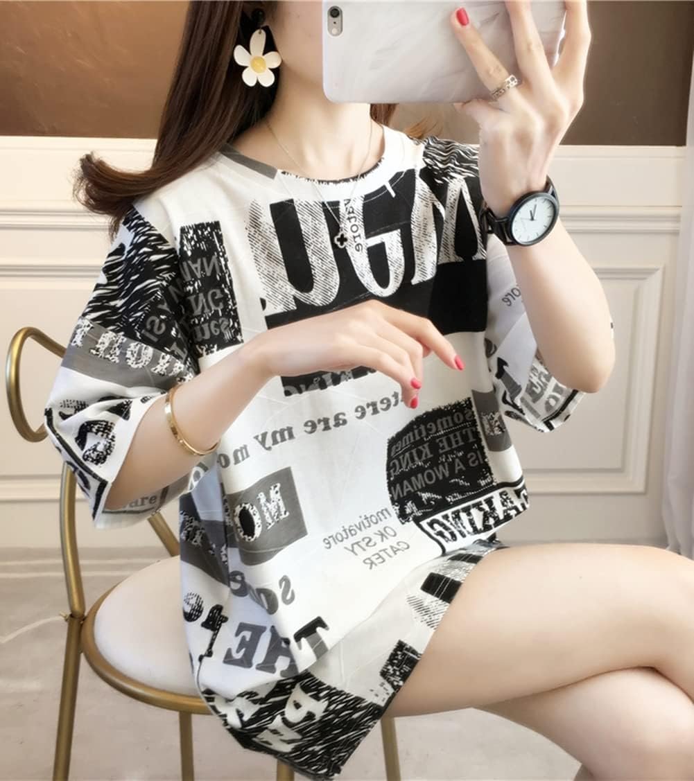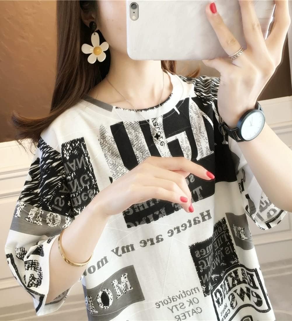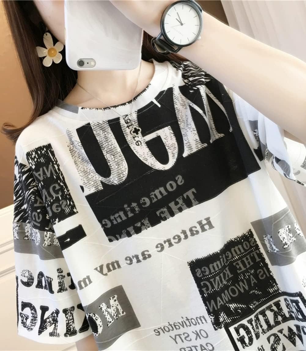 LytdレディースTシャツ、半袖、ルーズTシャツ、カジュアルファッションTシャツ、夏の服、混合黒と白、英語の文字、韓国スタイル、女性のハラジュクスタイル