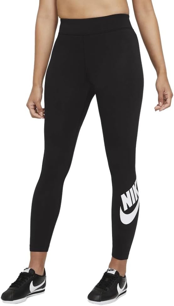 Nike Women’s NSW Essential Futura Long Tights、HW CZ8529-010、黒/白、女性用レギンス、タイツ、スパッツ、スポーツウェア、ヨガ、筋肉トレーニング、トレーニング