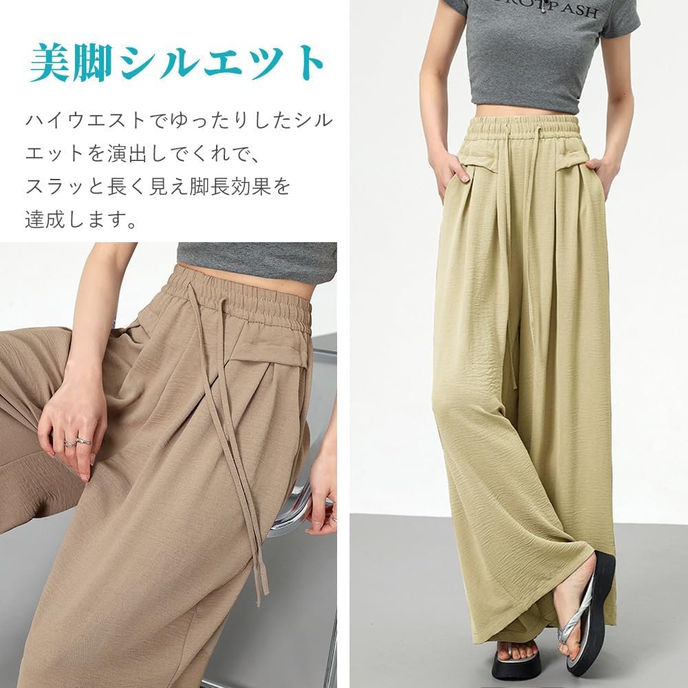 美しい脚のためのパフルワイドパンツ、春と夏のための涼しい長いズボン