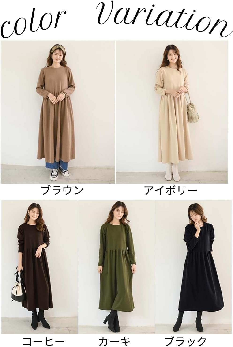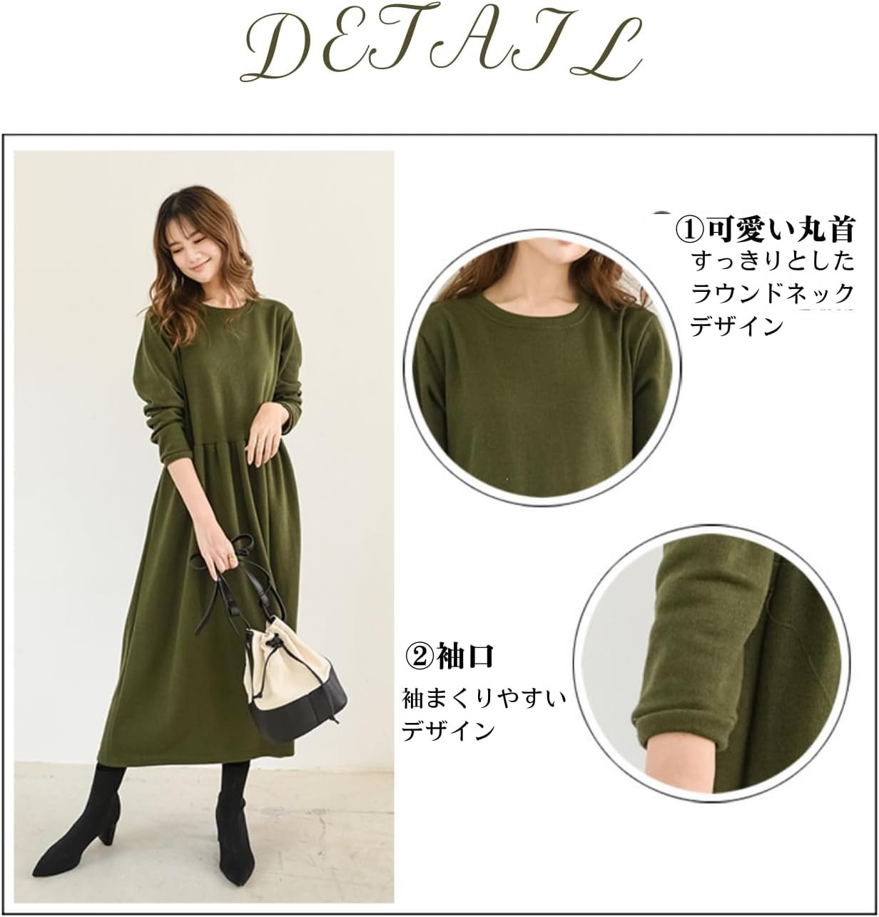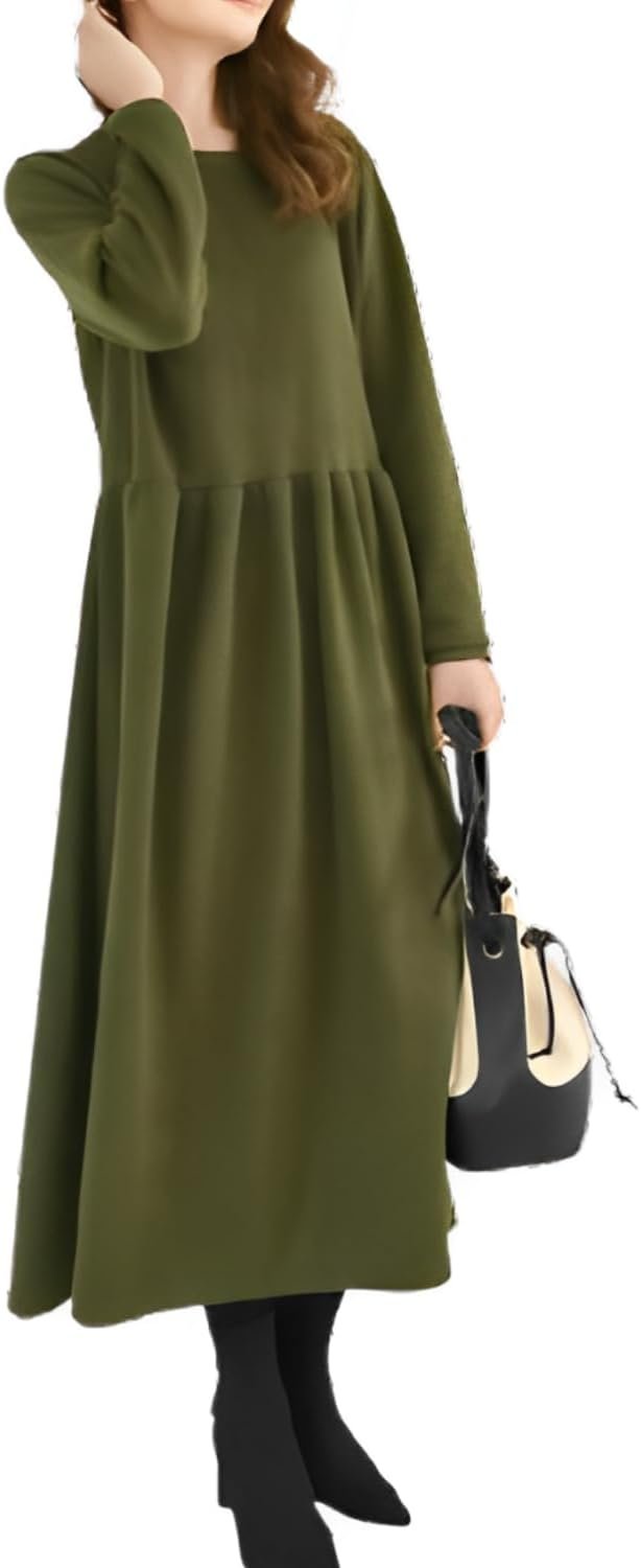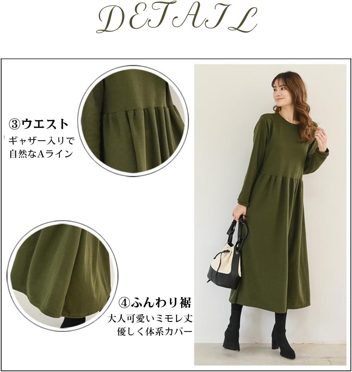 Riaminy Women’s Loose Easy Chin Dress、長袖、暖かい、ボディカバー、マタニティルームのドレス、マキシの長さ、ファッション、婦人服、神社訪問者用、春、秋、冬