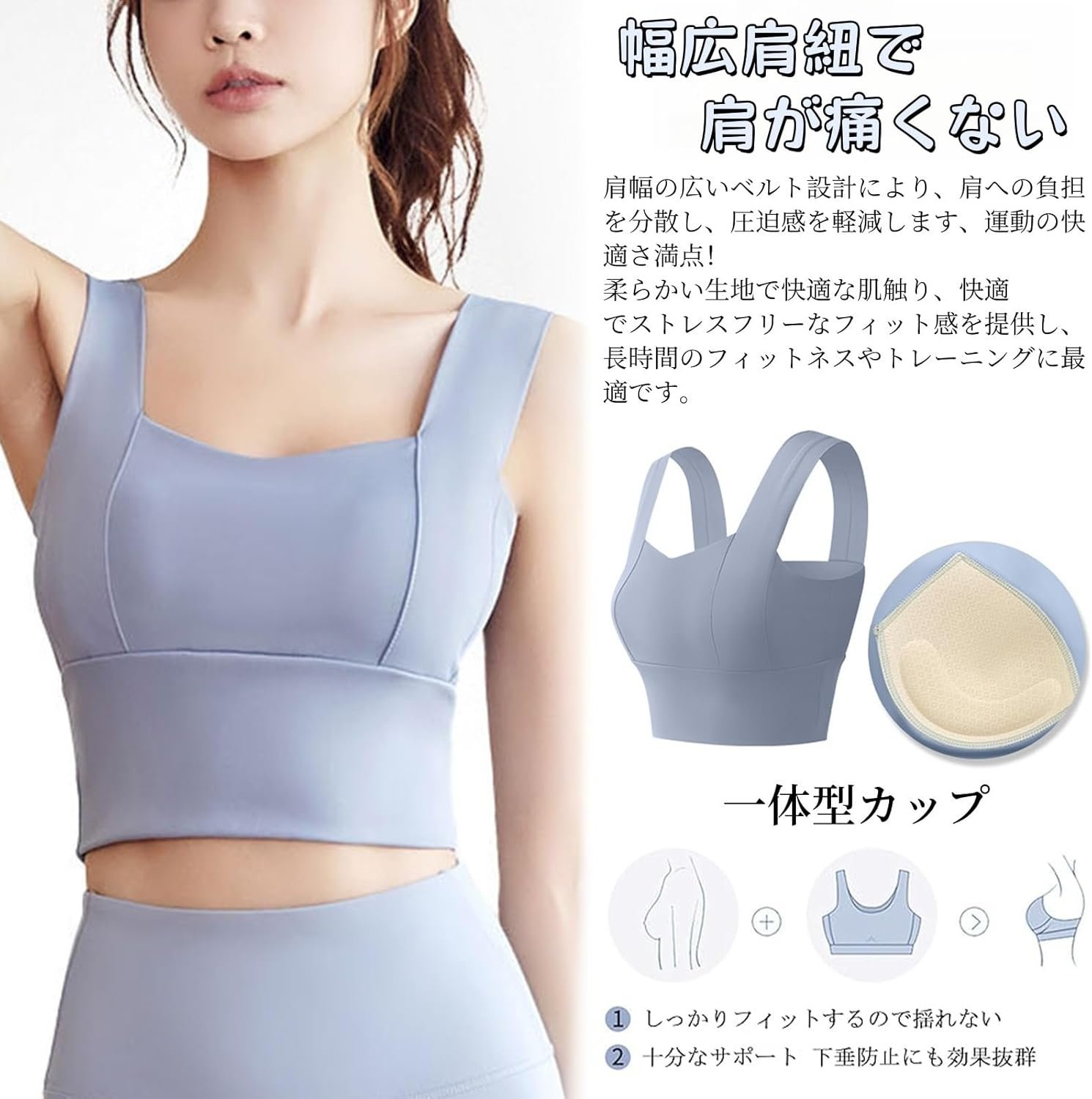 Senteria Sports Bra、Yoga Wear、Women’s、Non-Shaking、One-Piece Cup、Double Shourder Straps、Training、Yoga、Gym、Bra、Sports、Wireless、Sweat Absobent、Quick Drying、Runsing、High Support、Large