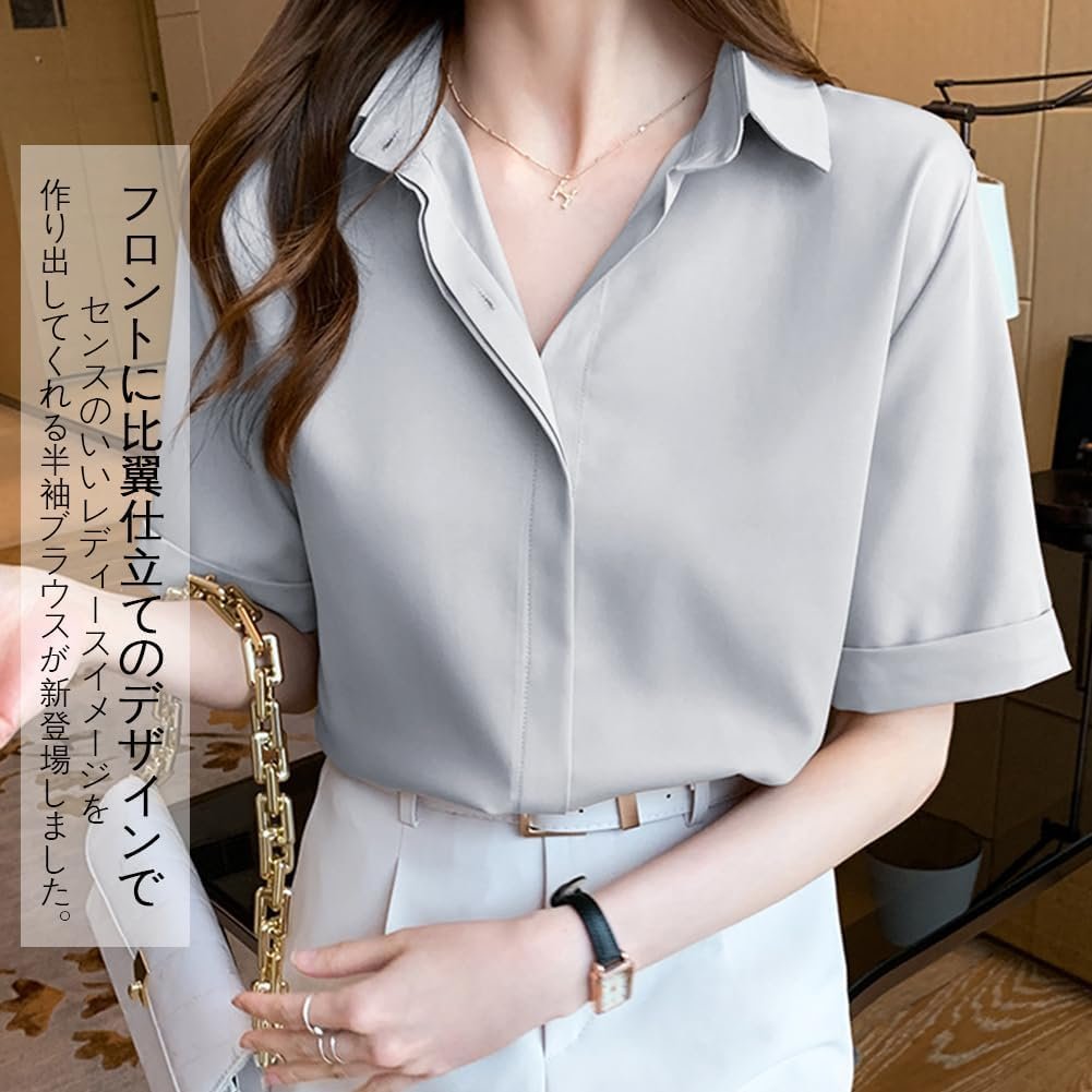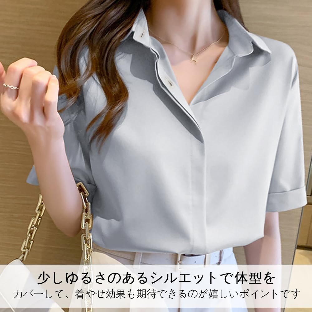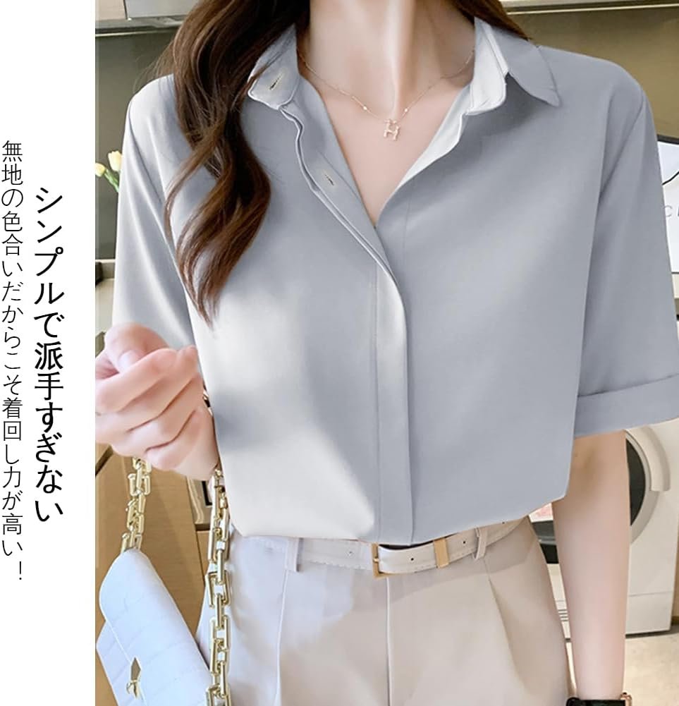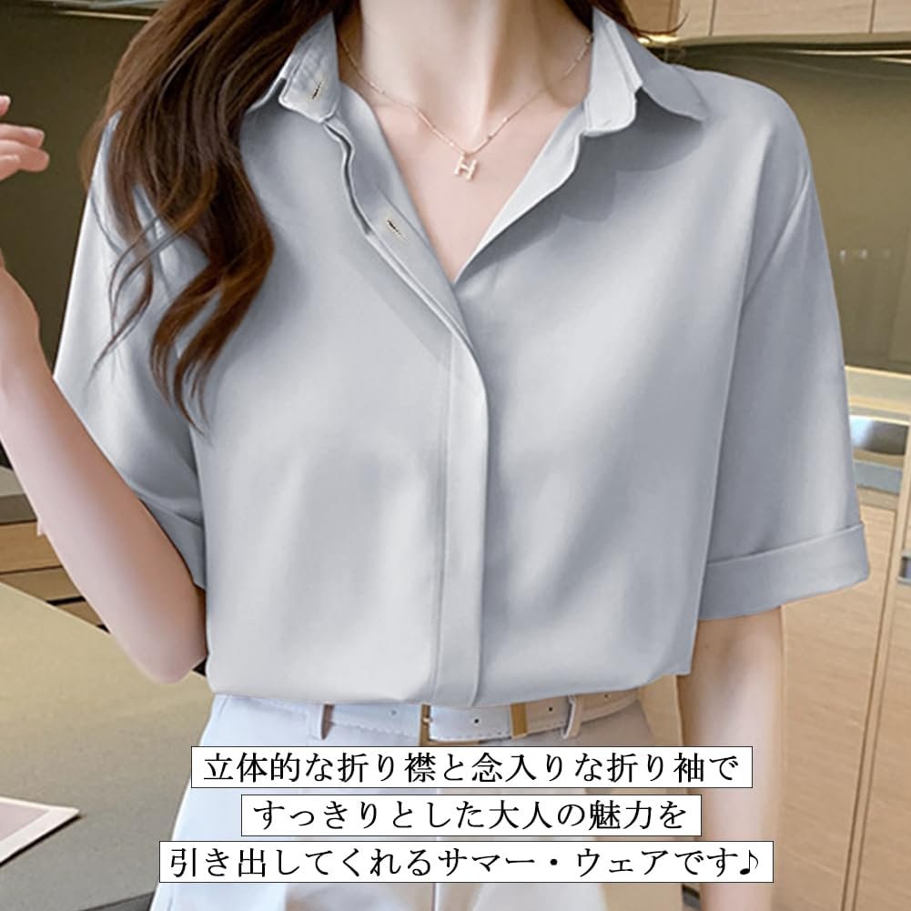 Sueeyaの女性用シャツ、ブラウス、折りたたみ式襟、半袖、夏、シンプル、プレーン、ボディカバー、スリミング、エレガント、スタイリッシュ、カジュアル、フォーマル、ビジネス、オフィス、トップ、夏、夏
