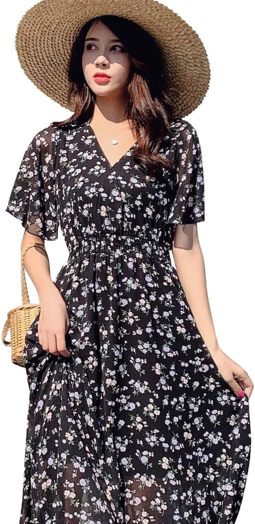 Teddy Tops1026女性の夏の長いマキシドレス、半袖、シフォン、シアー、Aライン