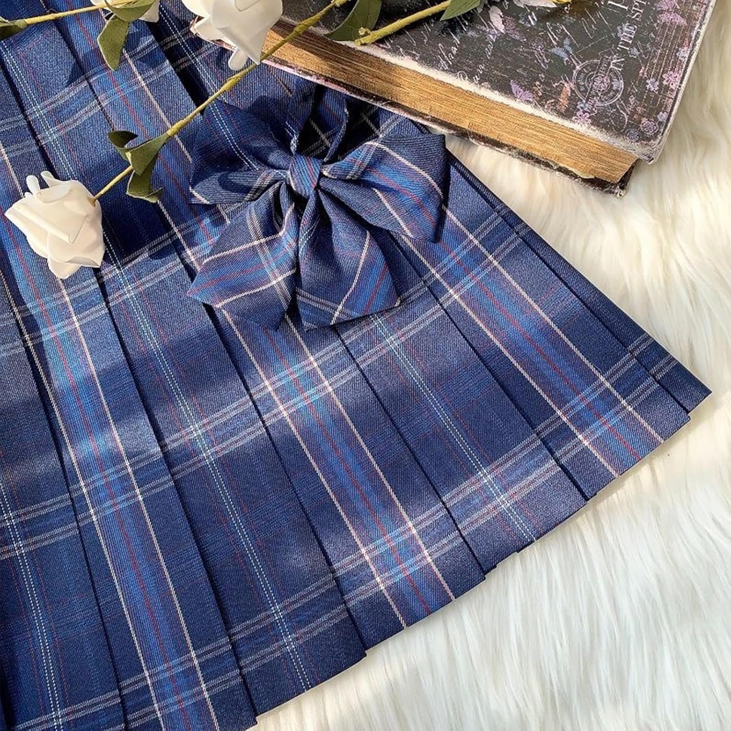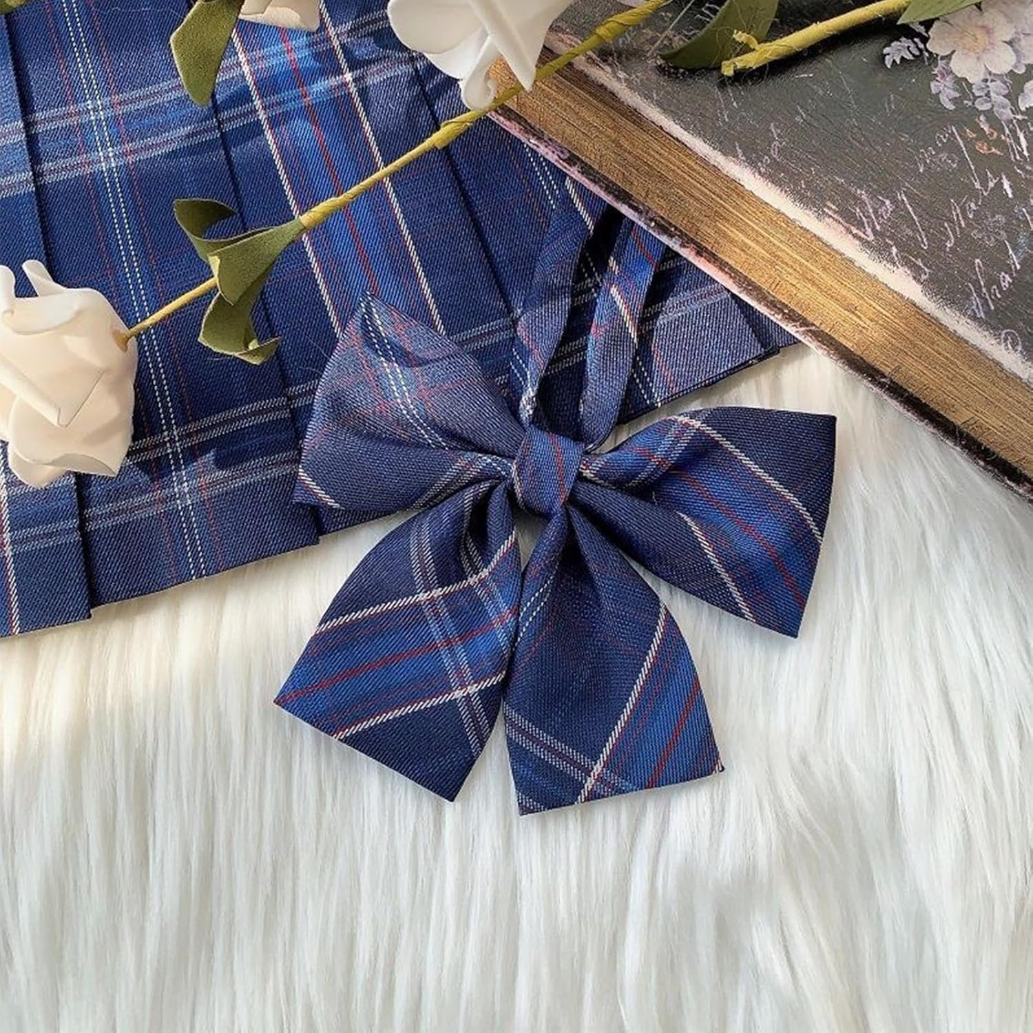 それぞれのハイウエストの格子縞のスカートには、リボンとネクタイが一致する2つのアクセサリーがあります。衣装全体の外観を1つのアクセサリーで変更します。