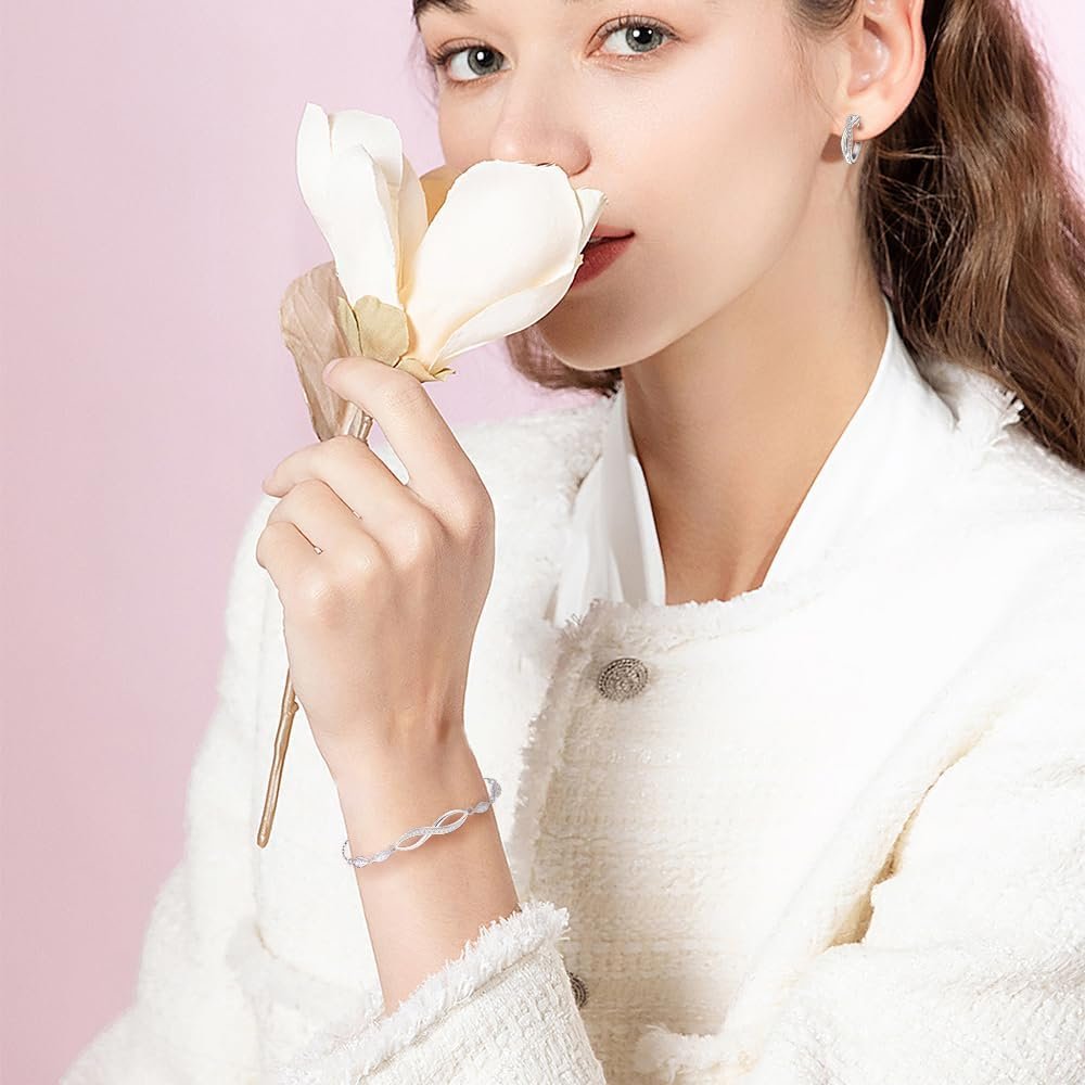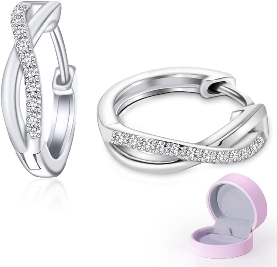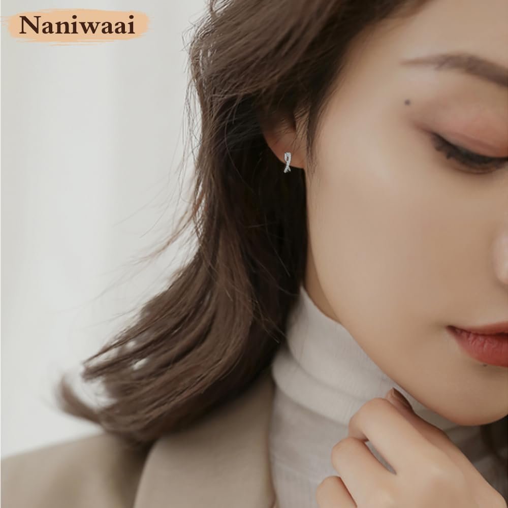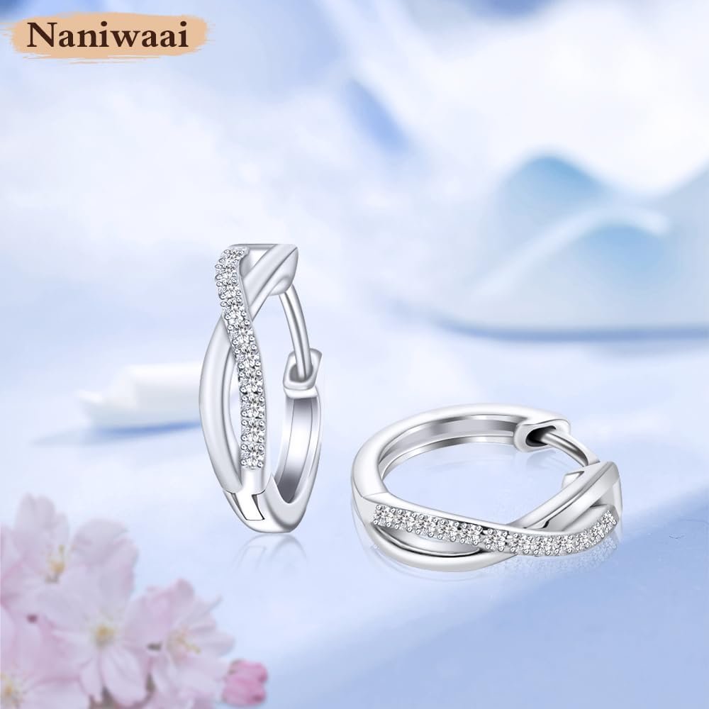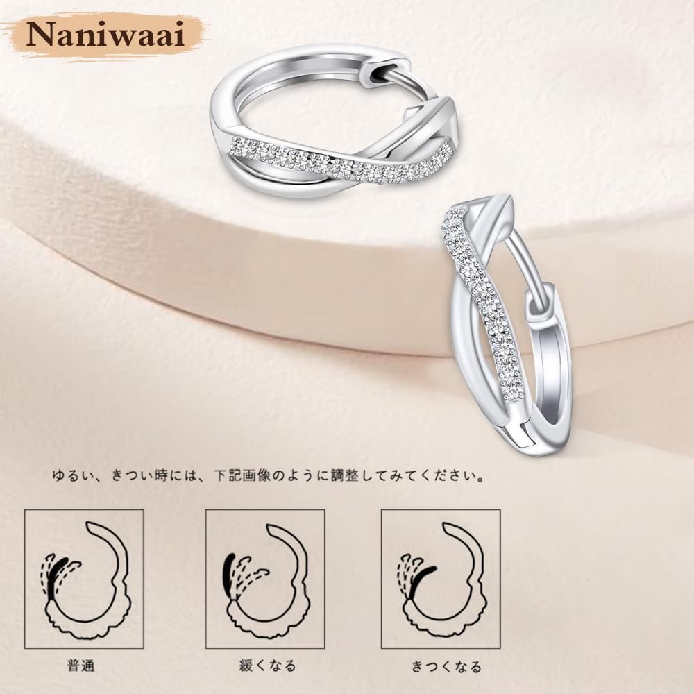 ナニワイの女性のイヤリング、人気があり、最高品質のジルコニア、低刺激性、ひねり、フープイヤリング、925シルバー、18Kゴールド、ブラスメッキ、シンプル、スタイリッシュ、イヤリング、アクセサリー、贈り物、誕生日、白い誕生日