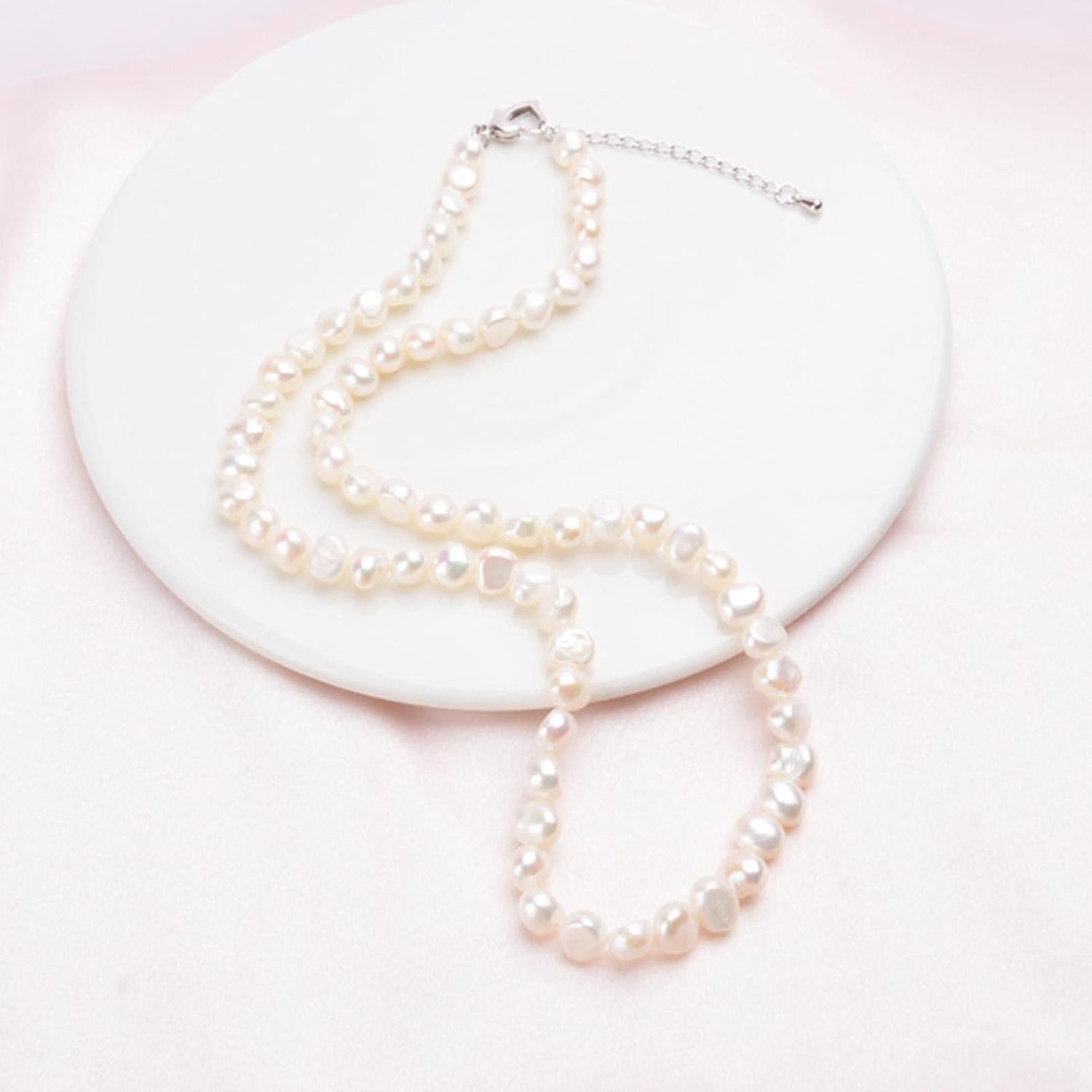 7-8mm淡水真珠のネックレス女性用クラシックナチュラルバロックパールジュエリー40cm