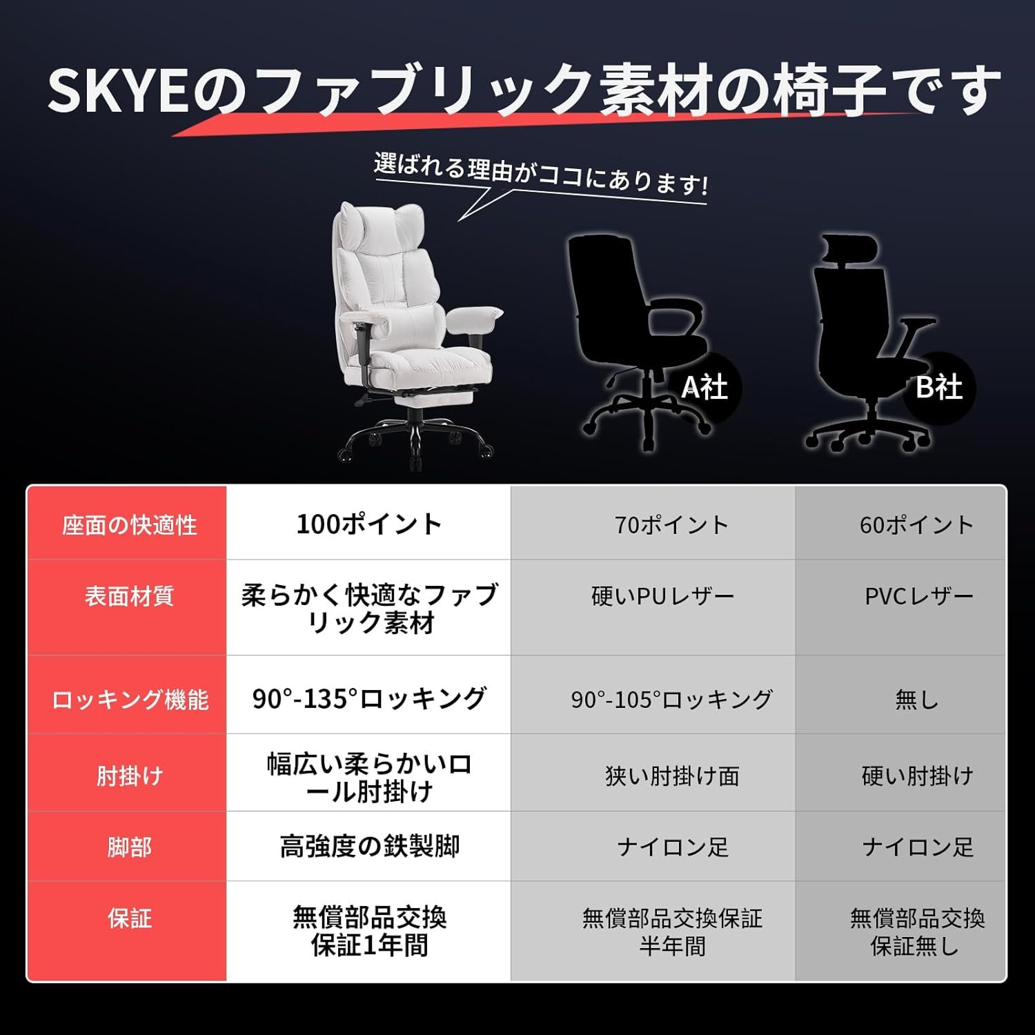 SKYE ゲーミングチェア ファブリック オフィスチェア デスクチェア パソコンチェア オットマン ゲーミングチェア ハイバック テレワーク 高さ調節可能 通気性抜群 (張地) (ホワイト)