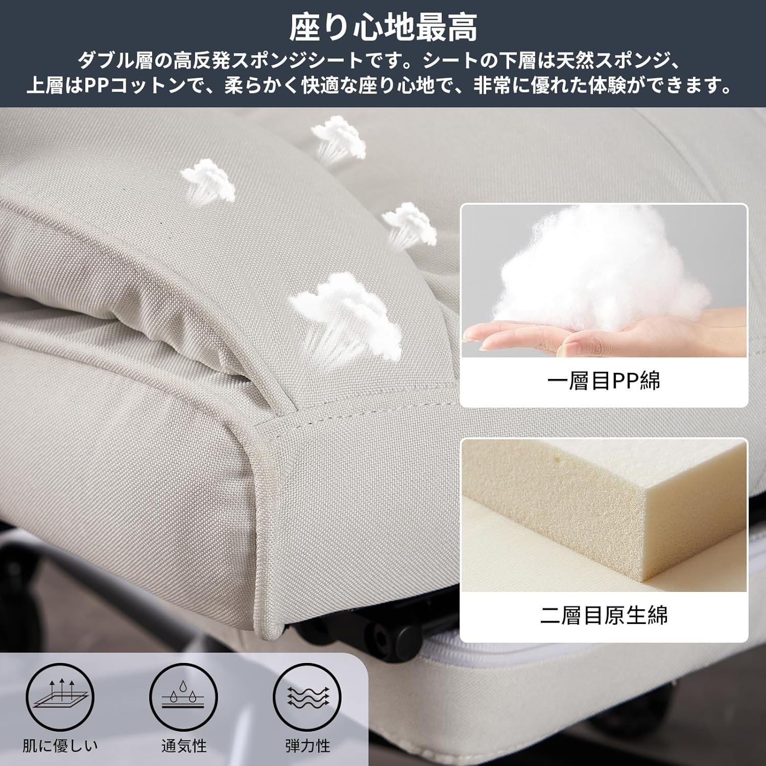 最高の座り心地:チェア製品の最も基本的かつ重要な部分である快適な座り心地を追求しています。座り心地が大幅に向上し、座面底部には高密度のオリジナルフォームを内蔵し、反発性能を高めています。上部にはPP綿が詰められており、柔らかくて快適です。一般的な椅子よりも耐久性と優れた快適性を確保します。また、背もたれの両サイドの凹みデザインが包み込まれるような座り心地を実現。 仕事中、学習中、休憩中、いつでもベストな状態を保ちます。