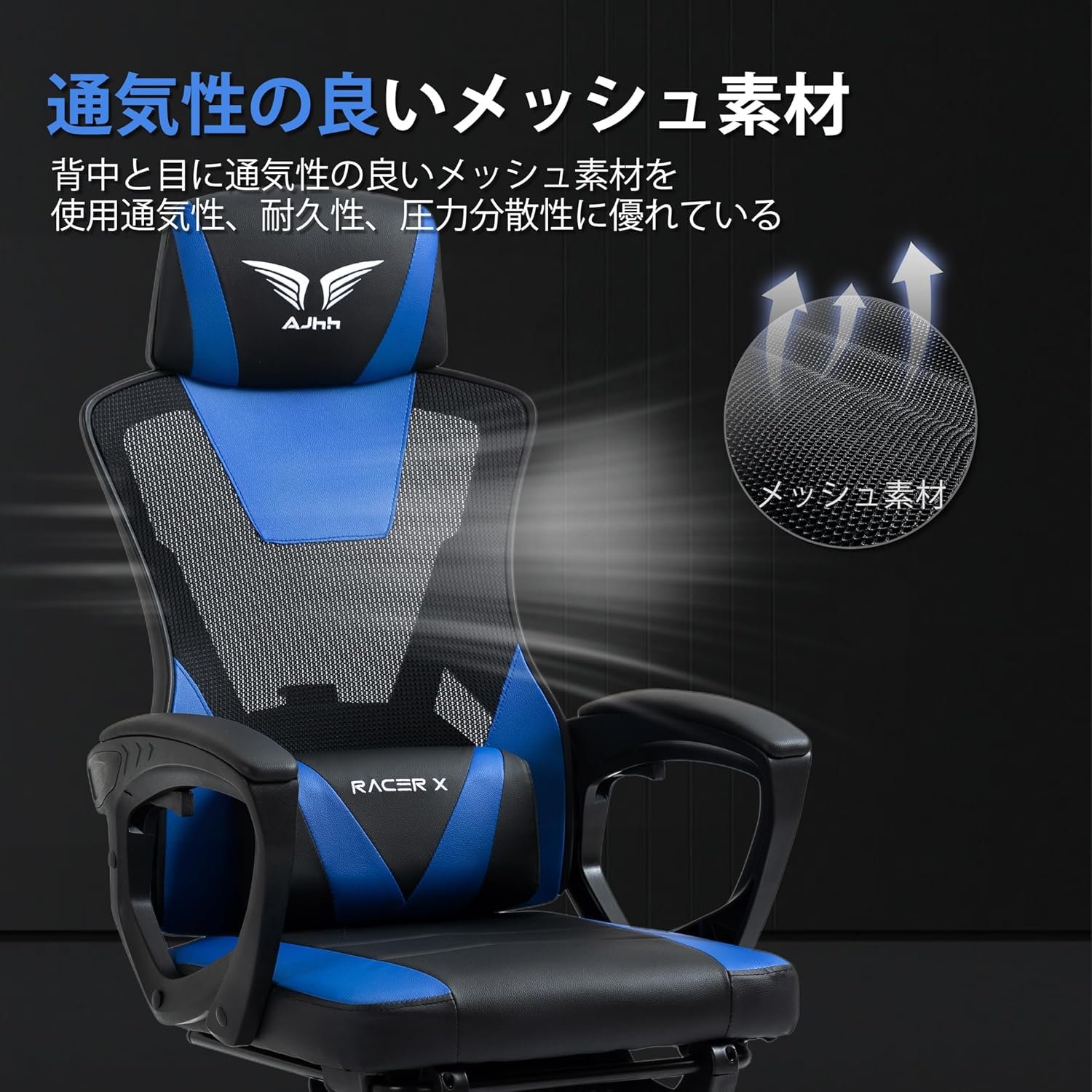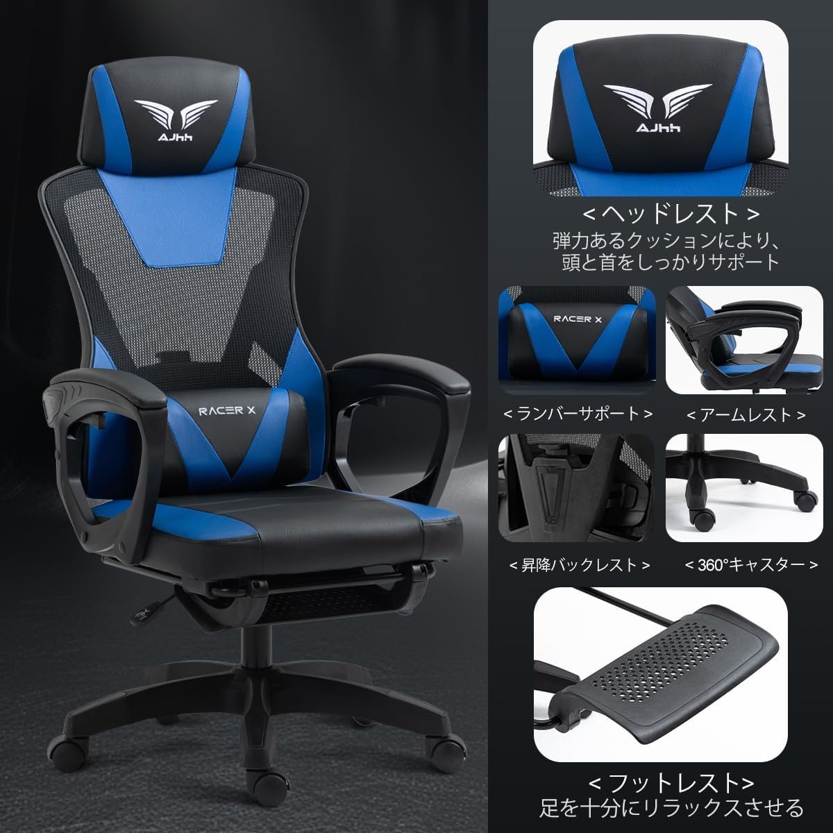 ゲーマーの場合:ゲームチェアは、腰、背中、肩のストレスを軽減する人間工学に基づいたデザインを備えており、長期間の仕事でも快適な姿勢を維持します。このゲームチェアは、優れた通気性のあるメッシュ素材で作られているため、暑い日には快適に使用できます