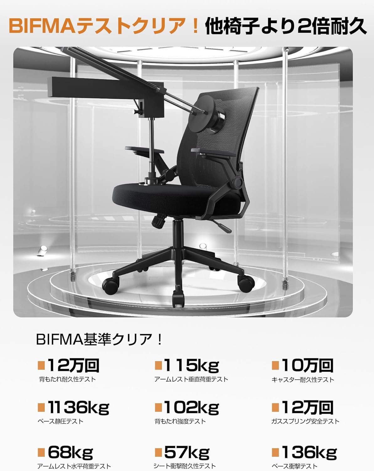 (認定耐久性)このオフィスチェアには、SGSクラス3ガスリフトが装備されており、標高のテストに100,000回以上合格しています。これにより、時間とともに安全かつスムーズに機能することが保証されます。また、Bifmaテストを備えた頑丈な金属ベースは、最大236ポンドの静圧に耐えることができます。さらに、それはスクラッチ耐性メッシュと高密度フォームで作られていますが、長い時間を使用しても簡単に変形することはありません