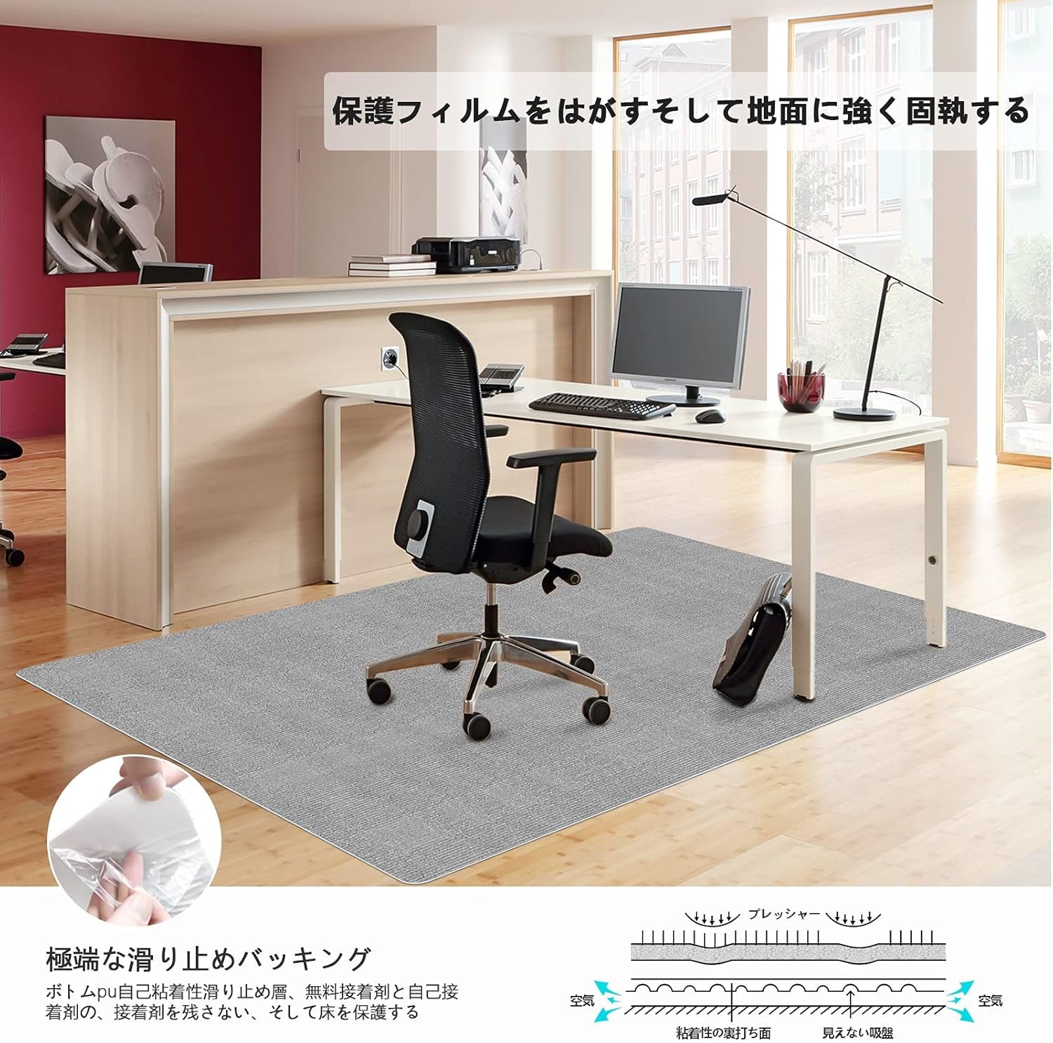eco環境にやさしく、無臭のマテリアルデスクチェアマット】hriiiiya椅子の椅子は、床の傷を防ぎ、家具パッドを保護するための高い安全材料でできています。鉛またはフタル酸エステルは含まれていません。子どもや高齢者にとって安全な自己粘着抵抗性の抵抗力のある床