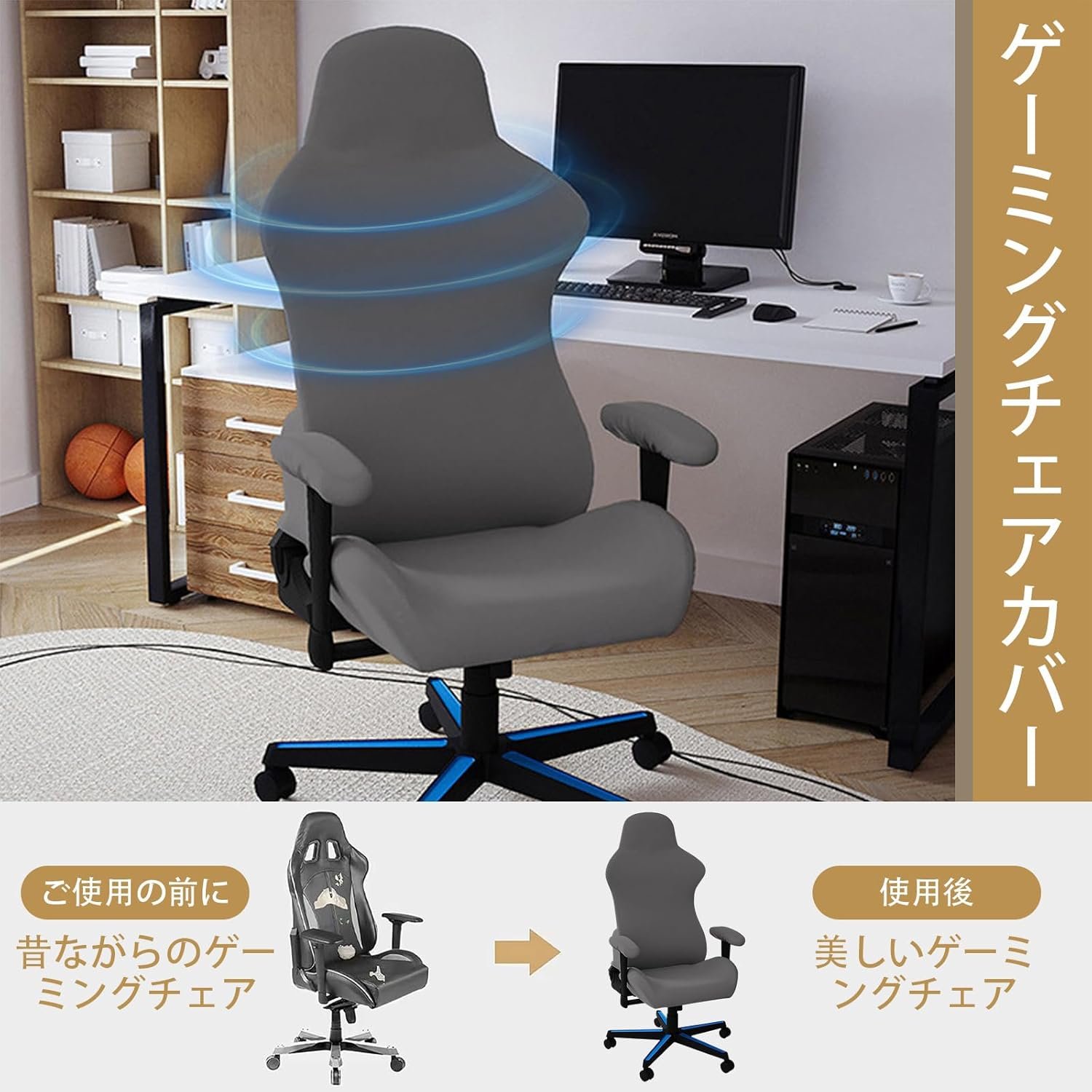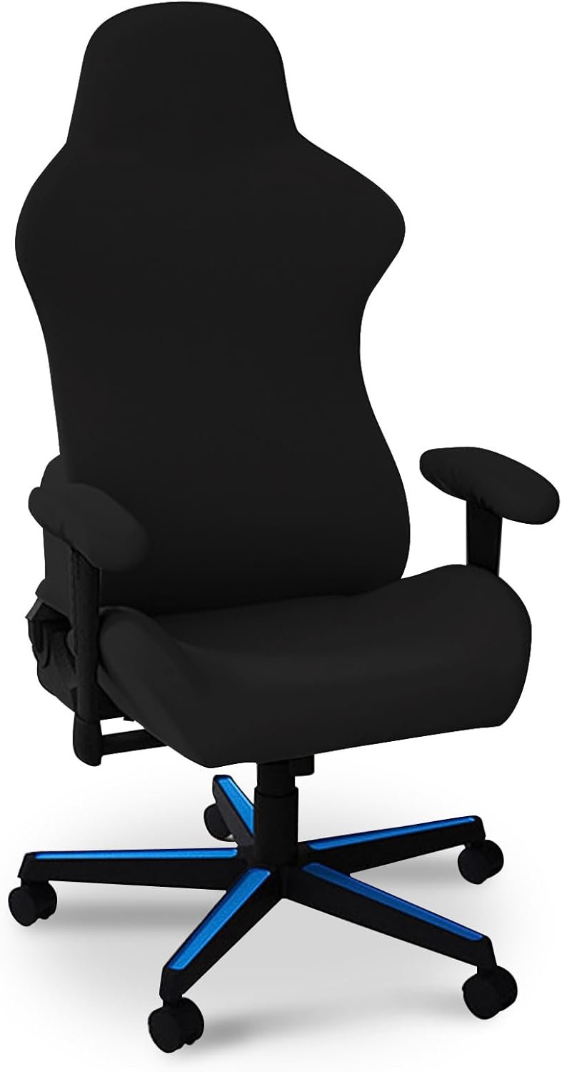 防水ゲーミングチェアカバーカバークールな雰囲気のオフィスチェアカバージッパーアームレストグローブ付きスナップロック洗えるシートカバーアンチフォールブラック