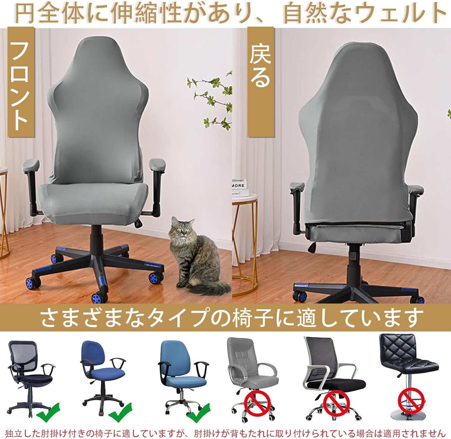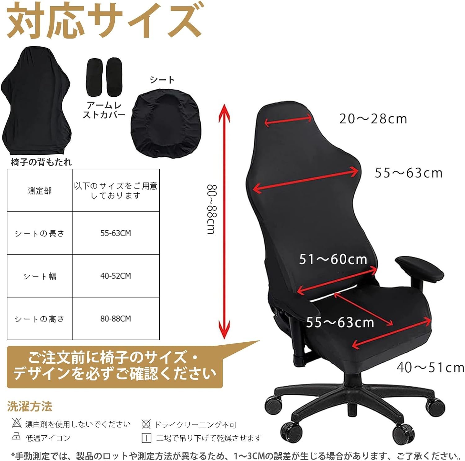 wried幅の範囲のアプリケーションcourse 2つのアームレスト、1つのシートカバー、1つの椅子のバックカバーを含む4つの椅子カバーのセットが届きます。ゲームチェア、オフィスチェアなど、さまざまな椅子に取り付けることができます。それはあなたの個人的な好みや環境に合わせてさまざまな椅子を提供します