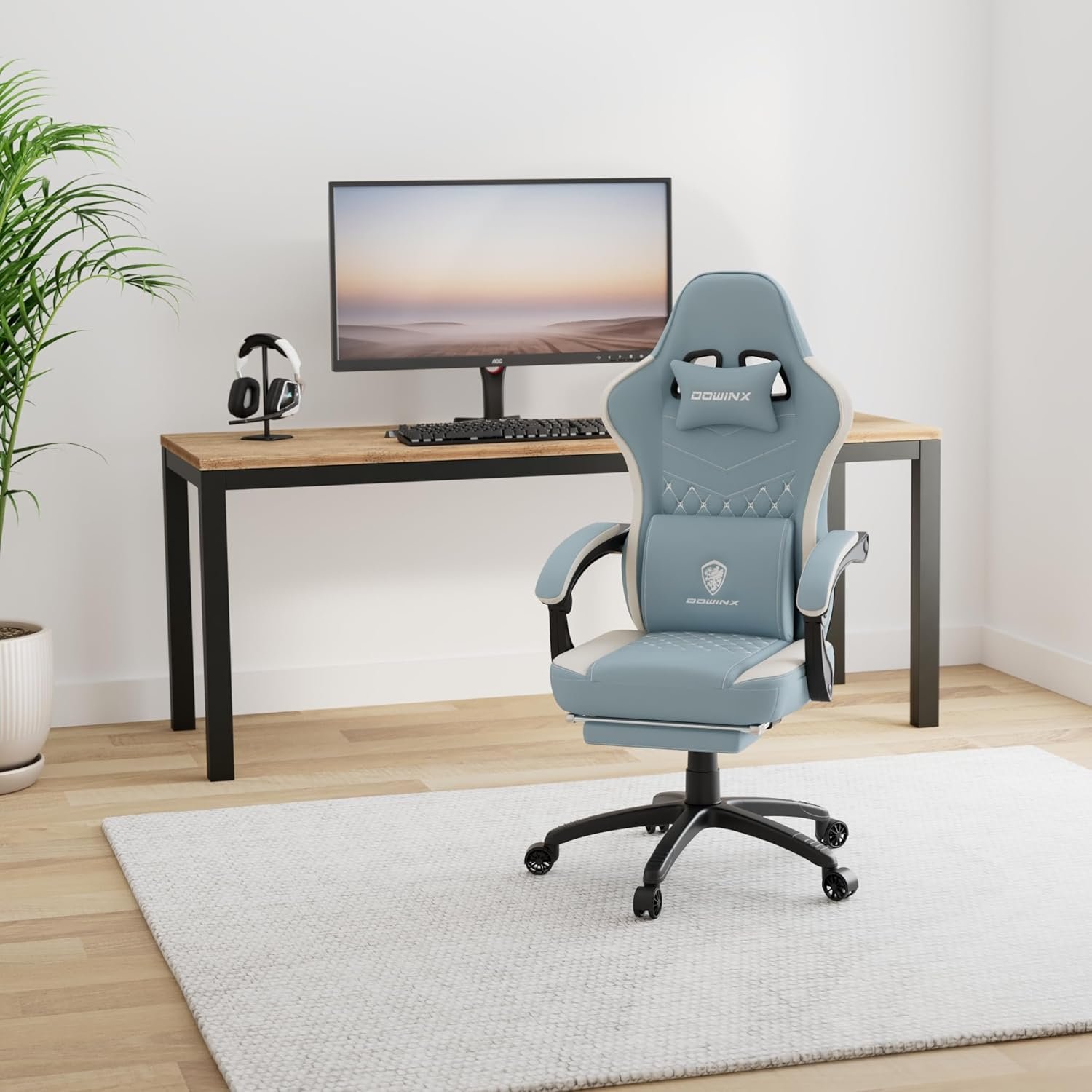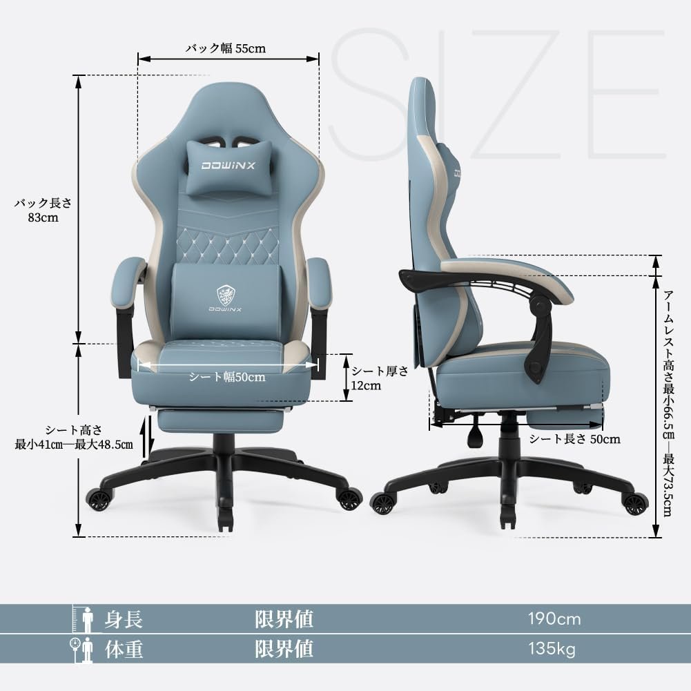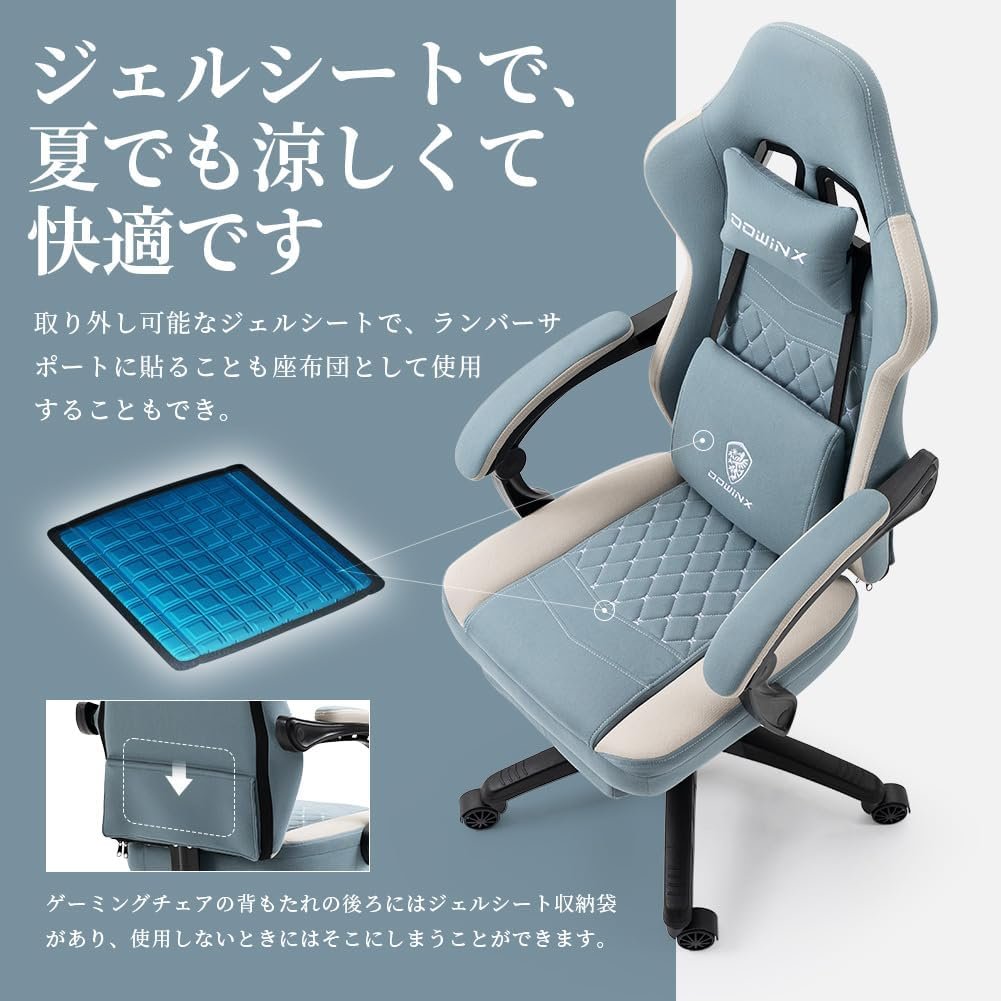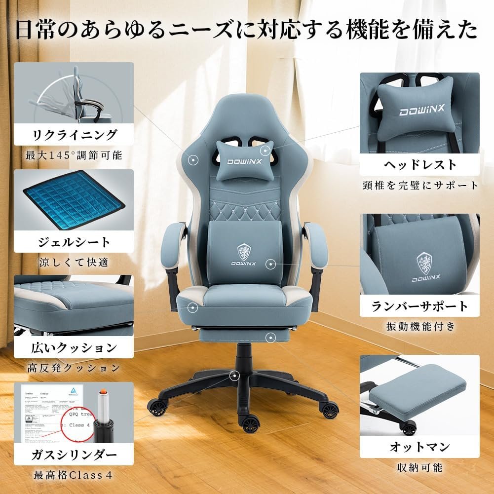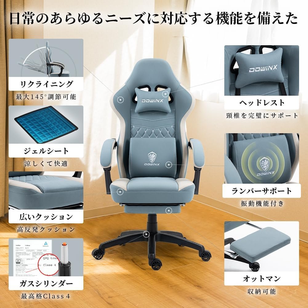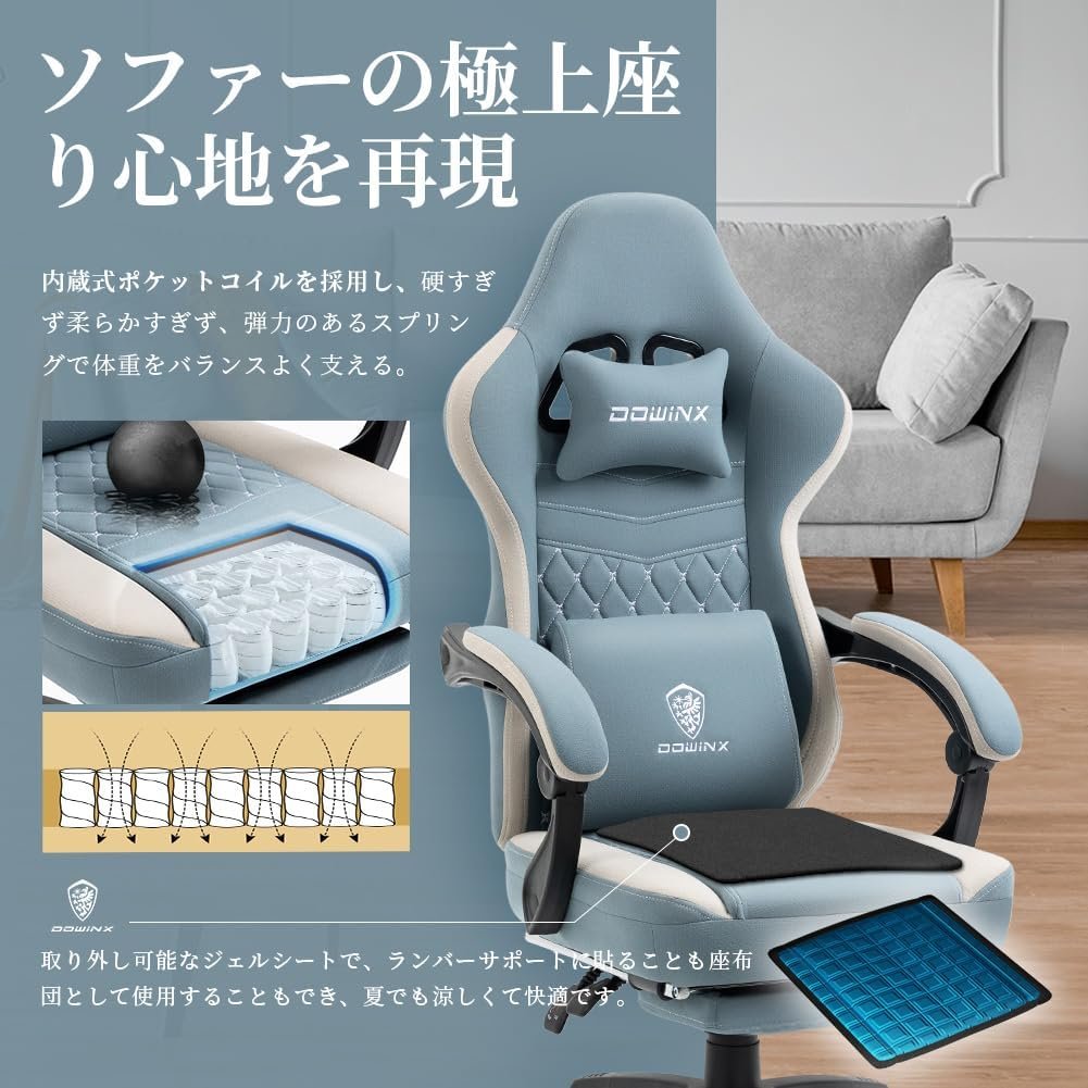 dowinxゲームチェアファブリックオットマン、オフィスチェア、コンピューターチェア、フットレスト、デスクチェア、ゲーム、布、ポケットコイル、PCチェア、ハイバック、快適なソファシッティング、スカイブルー