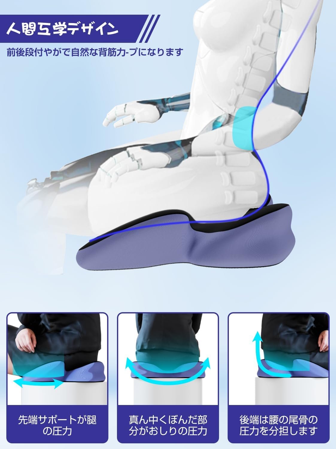 Ewinwotokoチェアパッド、メモリフォームクッション、多機能クッション、ドライビングクッション、腰痛、骨盤姿勢補正、滑り止め、通気性、すべての季節、オフィス、ホーム、カー