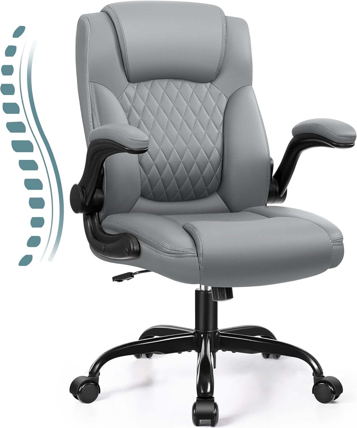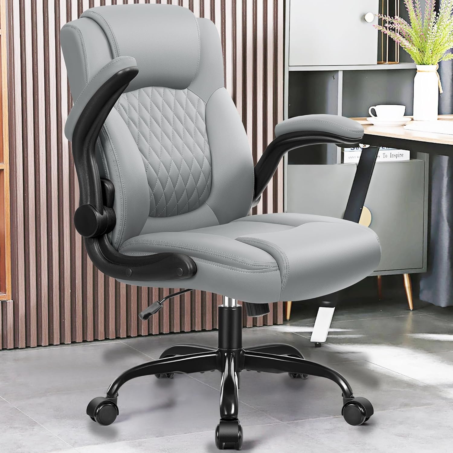 Felixking MP245オフィスチェア、短い身長360°回転、高さ調整可能なアームレスト、PUレザー、スペース保存、ゲームチェア、ロック機能、社長チェア、コンパクトデスクチェア、グレー