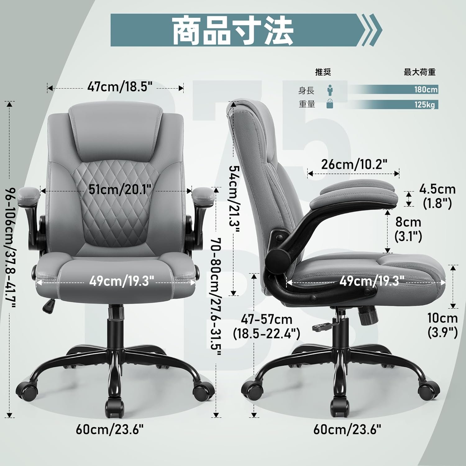 Be the first to review “Felixking MP245オフィスチェア、短い身長360°回転、高さ調整可能なアームレスト、PUレザー、スペース保存、ゲームチェア、ロック機能、社長チェア、コンパクトデスクチェア、グレー”