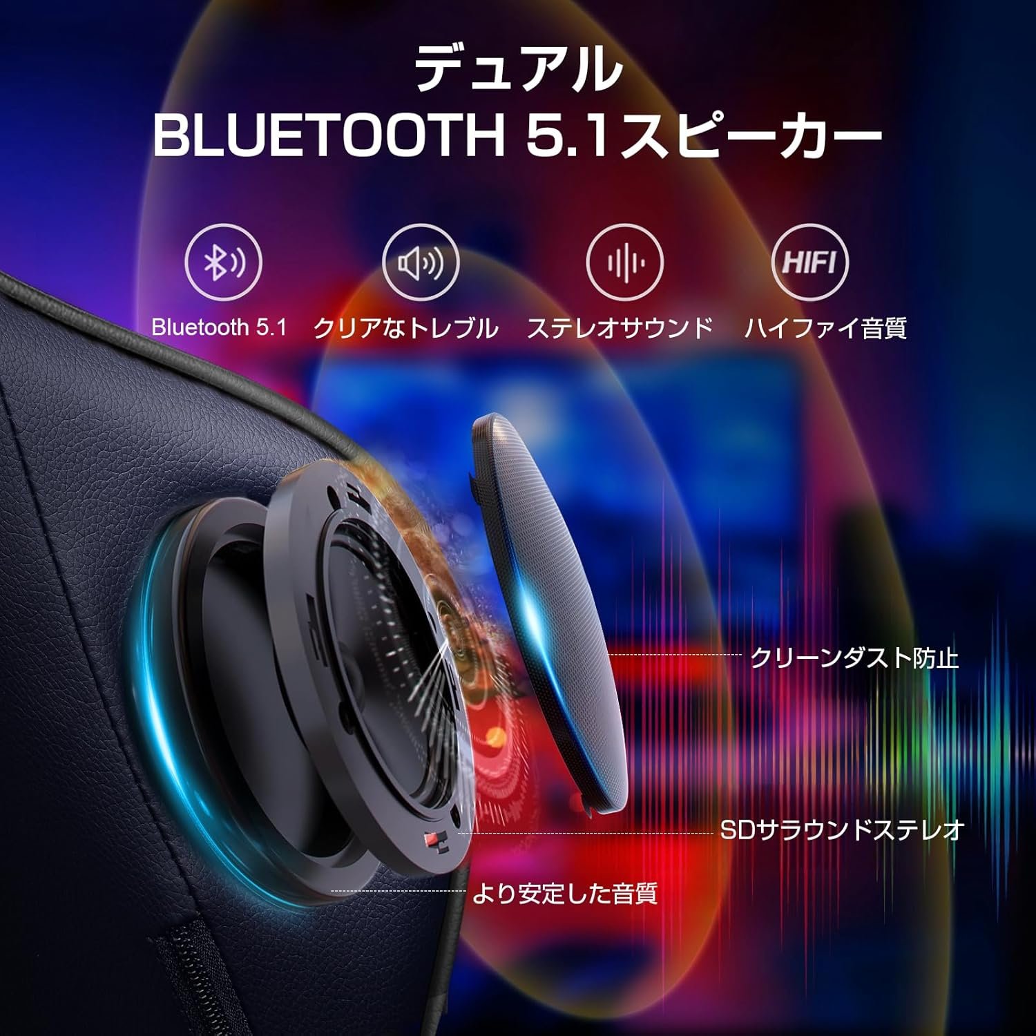 GTRACING GT890MFスピーカー、サラウンドエフェクト、オフィスチェア、フットレスト、デスクチェア、ゲームチェア、リクライニング、コンピューターチェア、ハイバック、ヘッドレスト、腰部サポート、アームレスト、PUレザー、