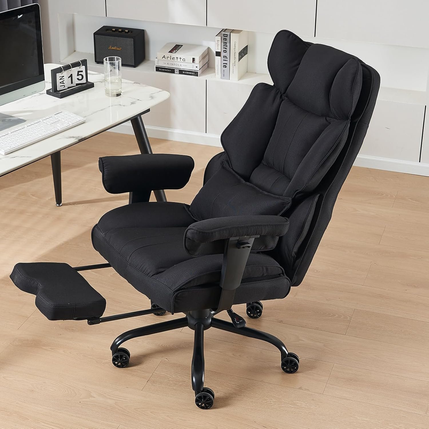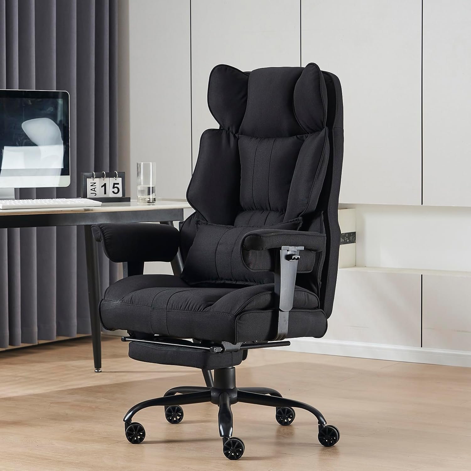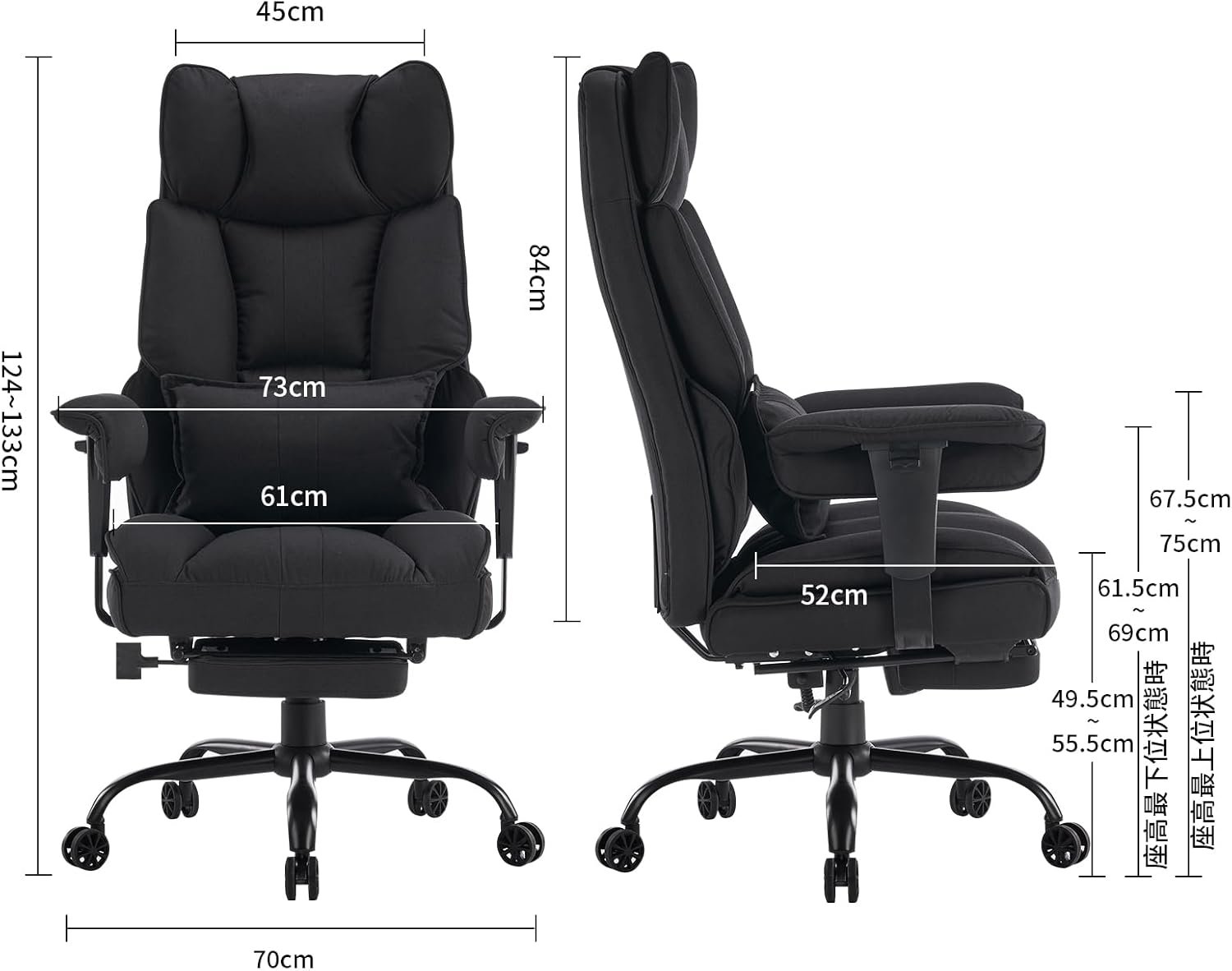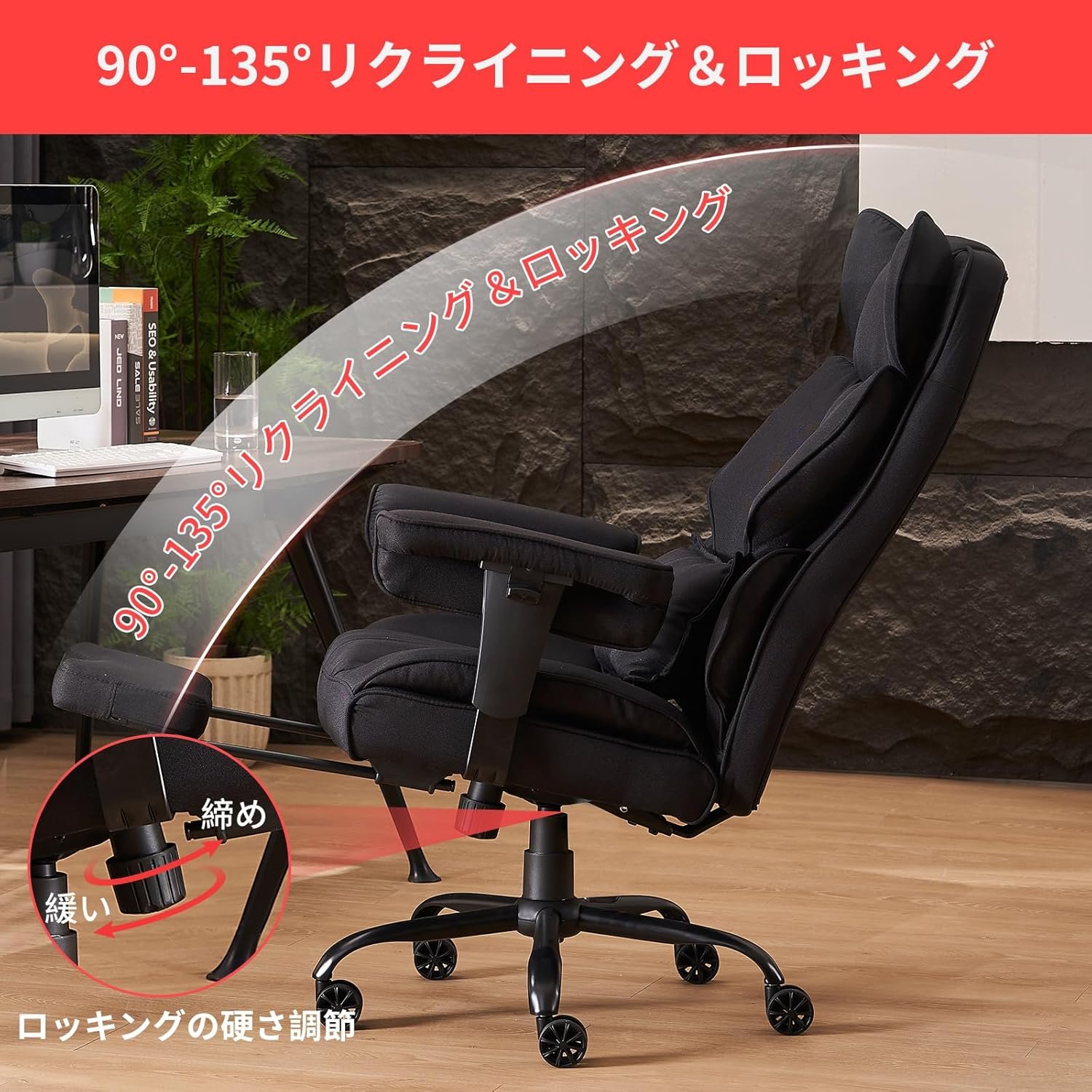 Hekiku Gaming Chair、Desk Chair、厚い座席、オフィスチェア、コンピューターチェアには、フットレスト、ハイバック、リモートワーク、通気性、布張り、黒が含まれています