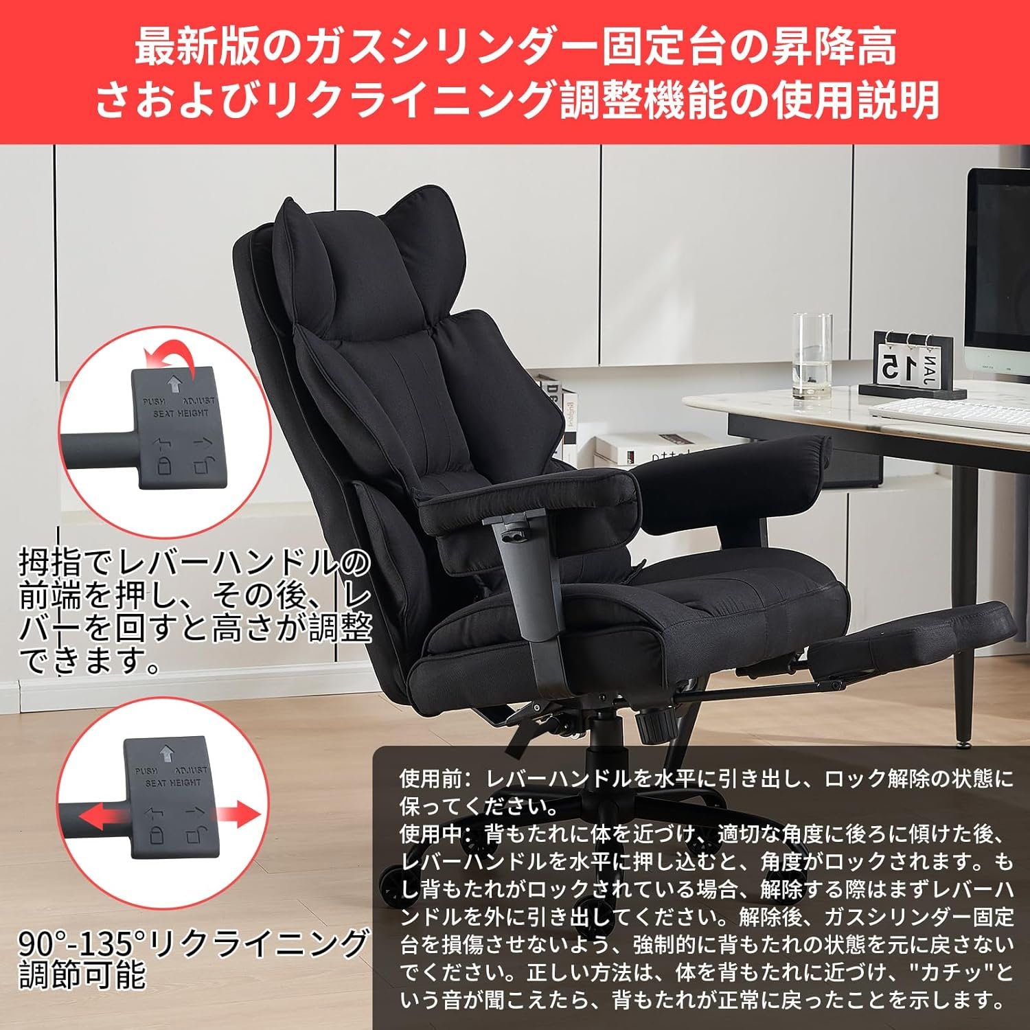 ゲーミングチェア、リクライニングチェア、オフィスチェア、コンピューターチェアには、フットレスト、リモートワーク、通気性、拡張可能、布張りが含まれています。