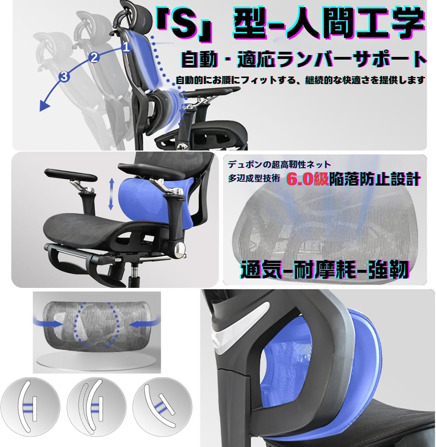 (高品質の材料と自動適応腰椎サポート)通気性のあるドラゴンクレスト織りメッシュ材料で作られた、長期にわたって使用した後でも詰め物を防ぐ。腰に合うように自動的に調整されるLumbarサポートを装備します。長い間座っていても、腰の負担を軽減し、健康で快適な座り込みを提供します