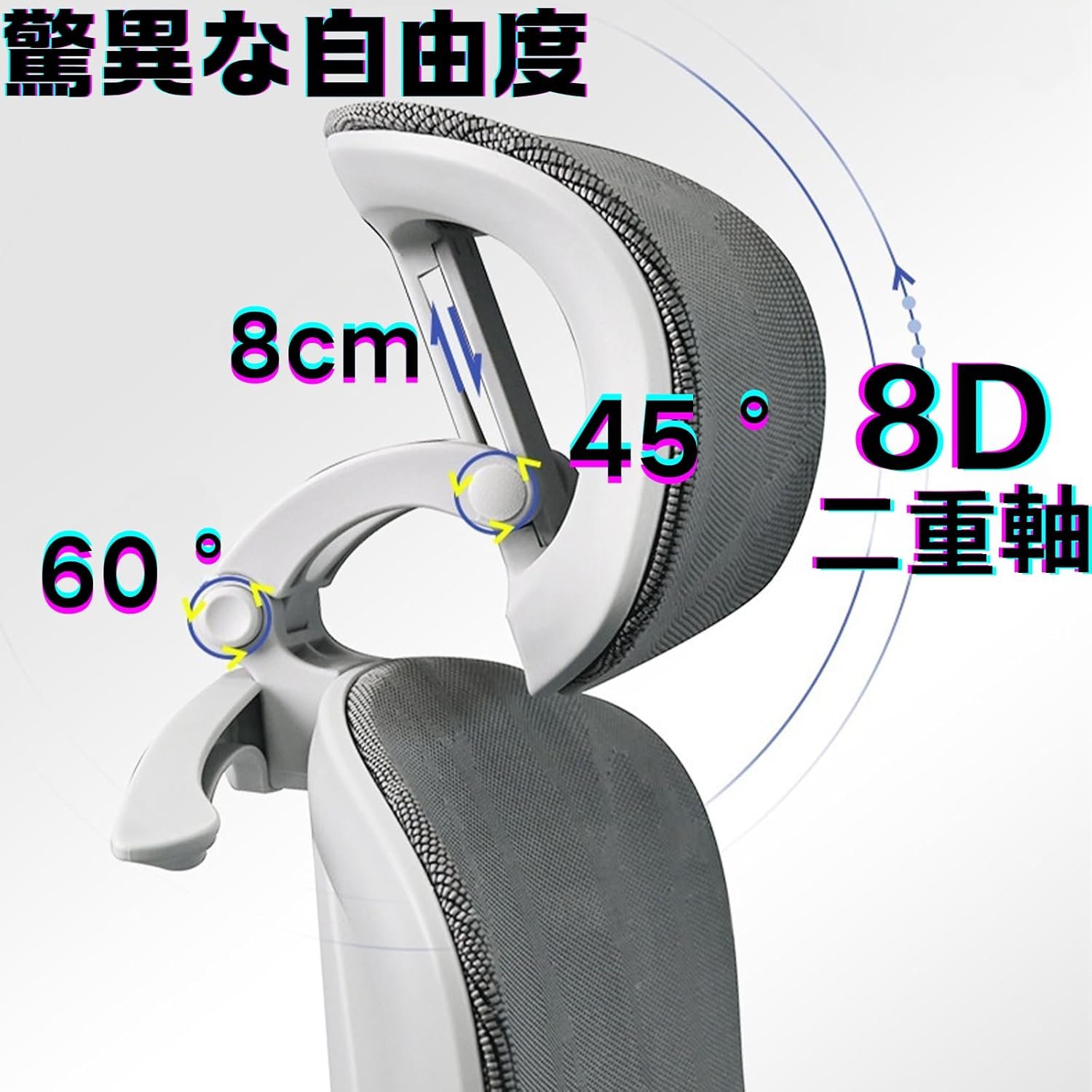 9Dインターロックアームレスト、8Dヘッドレスト、ワイド調整:アームレストは、フロントとバック、アップ、左と右などの9つの方向で調整できます。そのため、さまざまなデスクと使用スタイルに適合します。 8Dヘッドレストは、微細な高さと角度に調整して、首と肩のひずみを減らすこともできます。快適な休息をサポートします