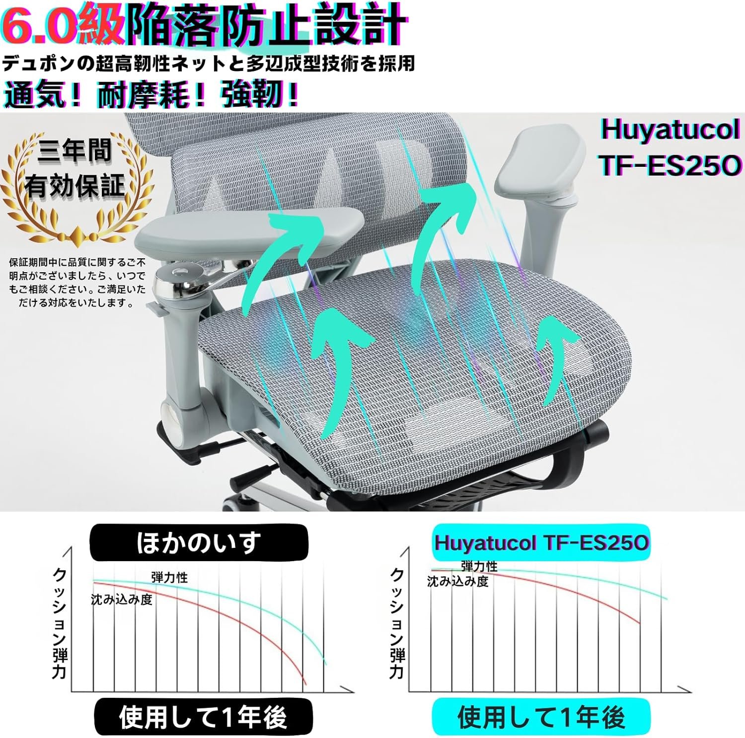 スマート重力メカニズム、リクライニング調整機能:リフトレバーを外側に引っ張ってリクライニングモードに切り替えるだけです。 Huyatucol TF-ES25Oオフィスチェアは、体重に応じてリクライニング強度を自動的に調整するスマート重力を特徴としているので、誰でも好きな角度で快適にリラックスできるように